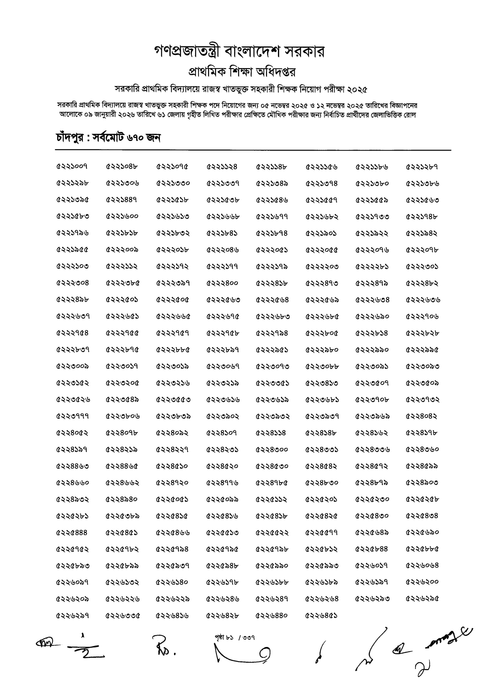 Primary MCQ Exam Result 2026 PDF 083