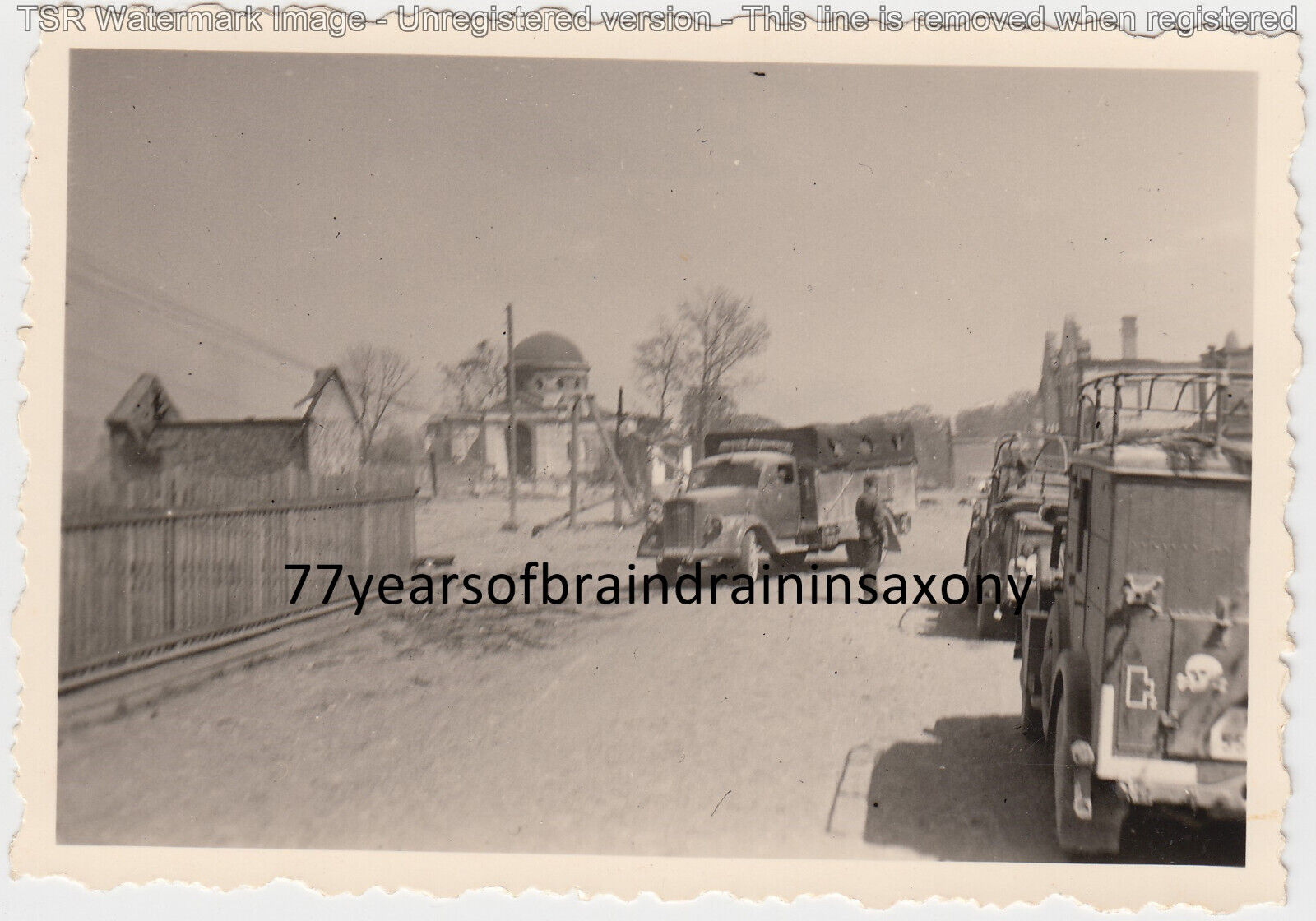 Foto Rußland Opotschka Elitesoldaten Lkw Opel Blitz Kübelwagen Totenkopf Verband
