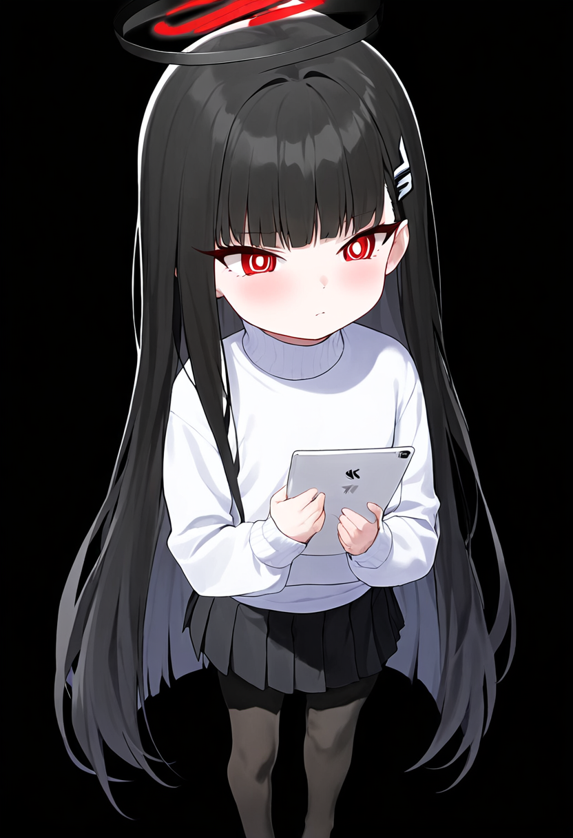 1 girl, healthyman, rio (blue archive), aged down, {little child}, black backgro s-2187612679