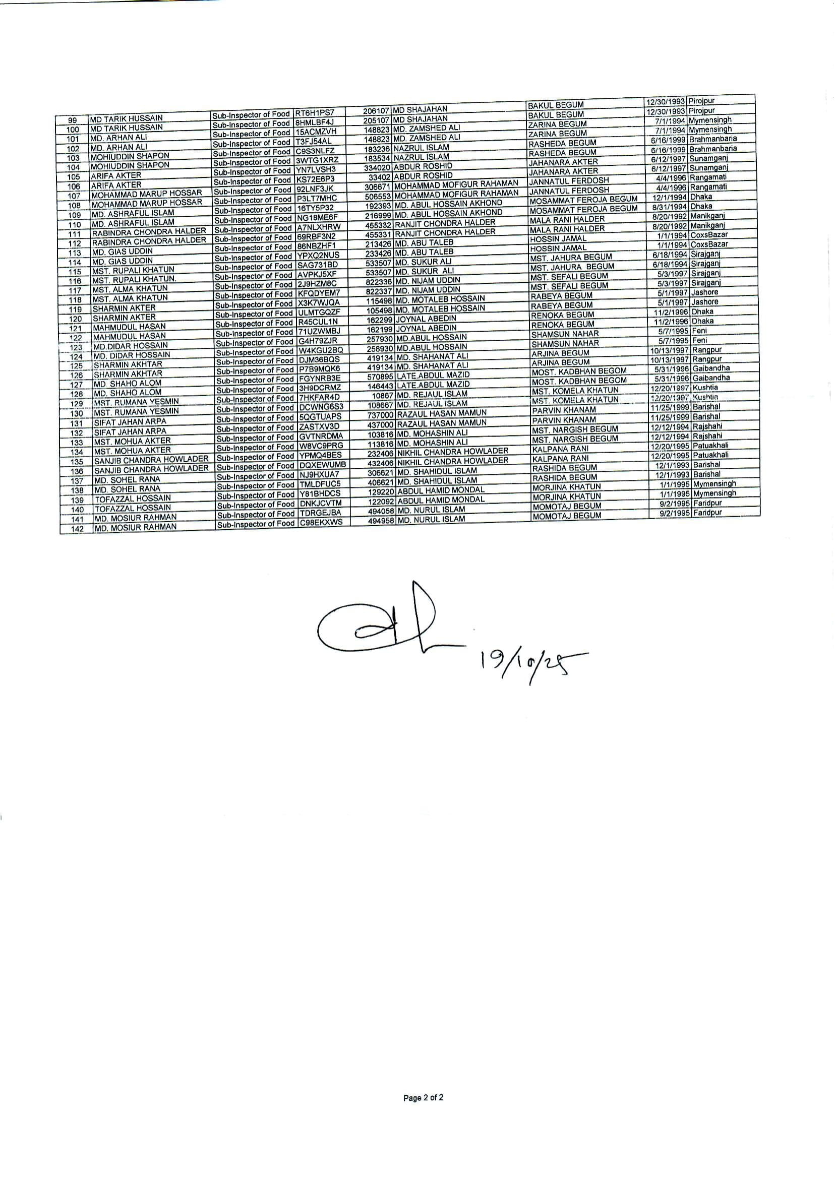 DGFood Sub-Inspector of Food Exam Void Candidate List PDF-4