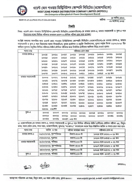 WZPDCL Exam Result 2025 PDF-1