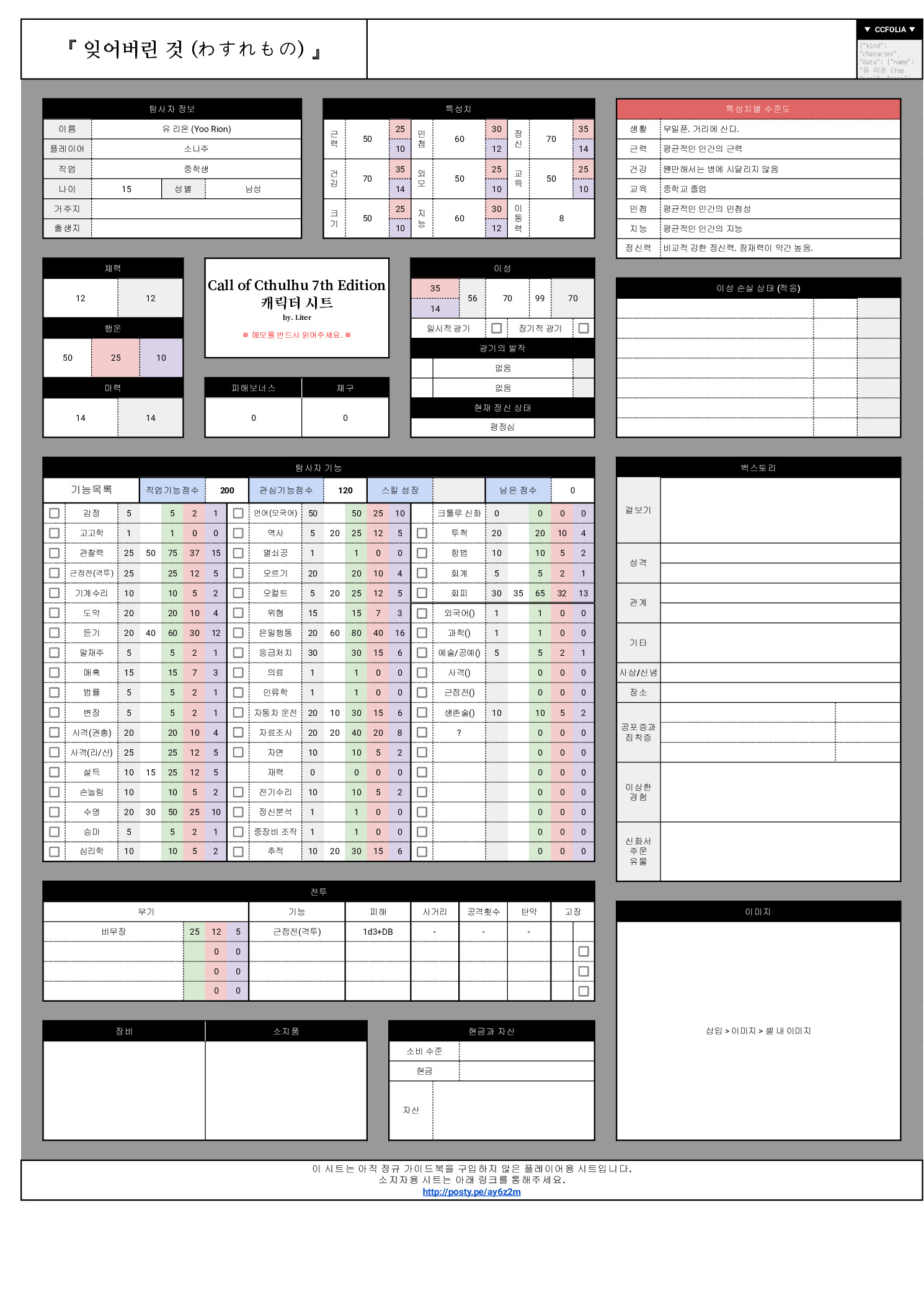 CoC Character Sheet by Liter _ 미소지자용의 사본 - Google Sheets