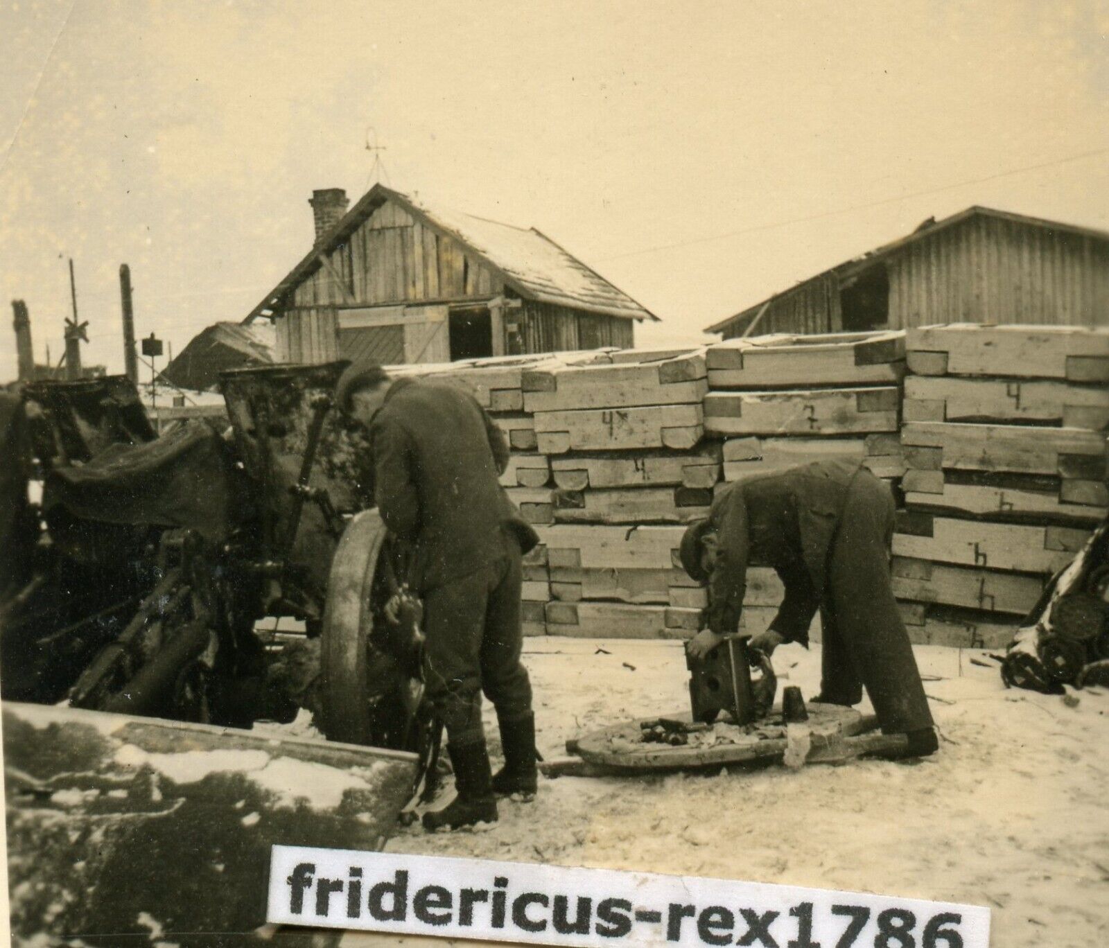Fotos WH HKL Ostfront Winter Geschütz Kanone mit Holz abgetarnt Stellung1