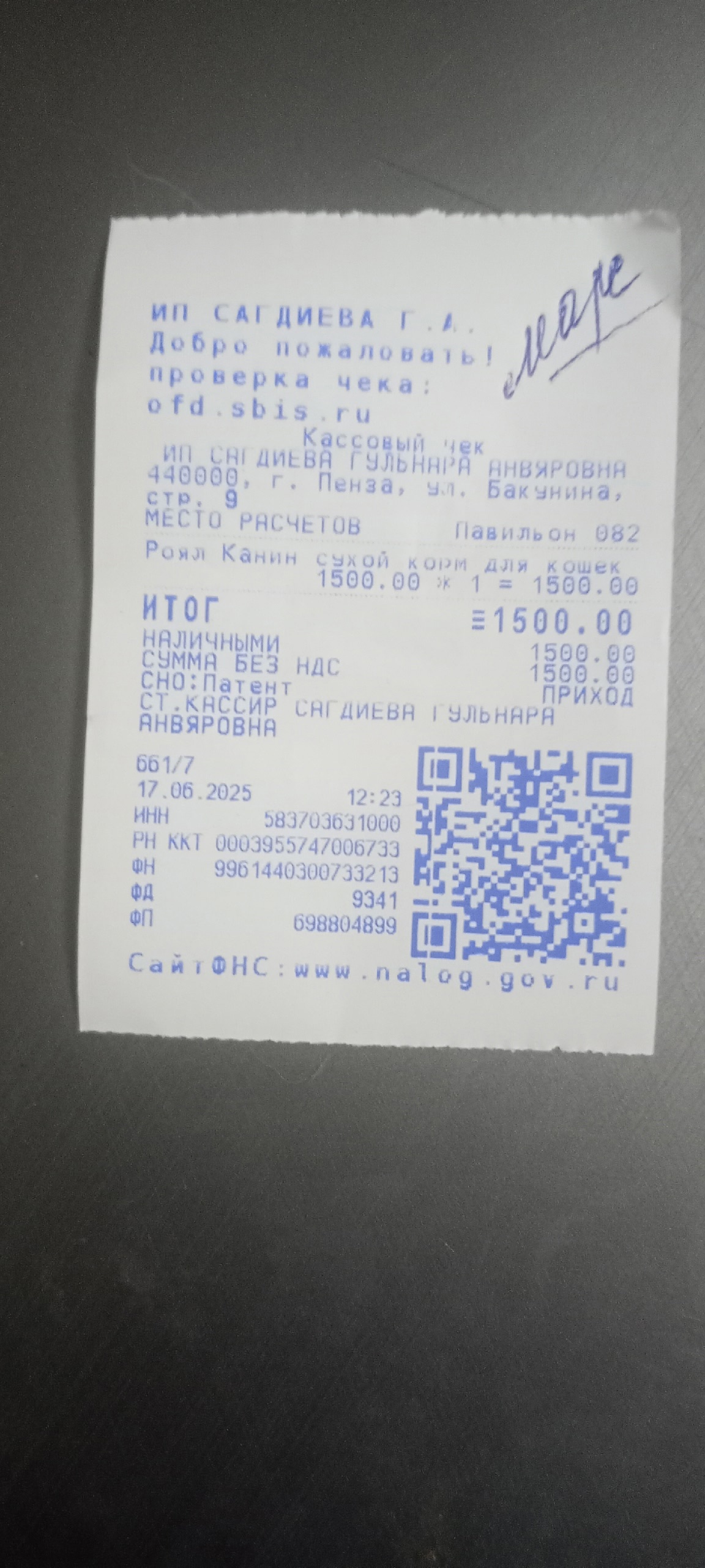 марс чек 17.0.2025 корм 1500,00