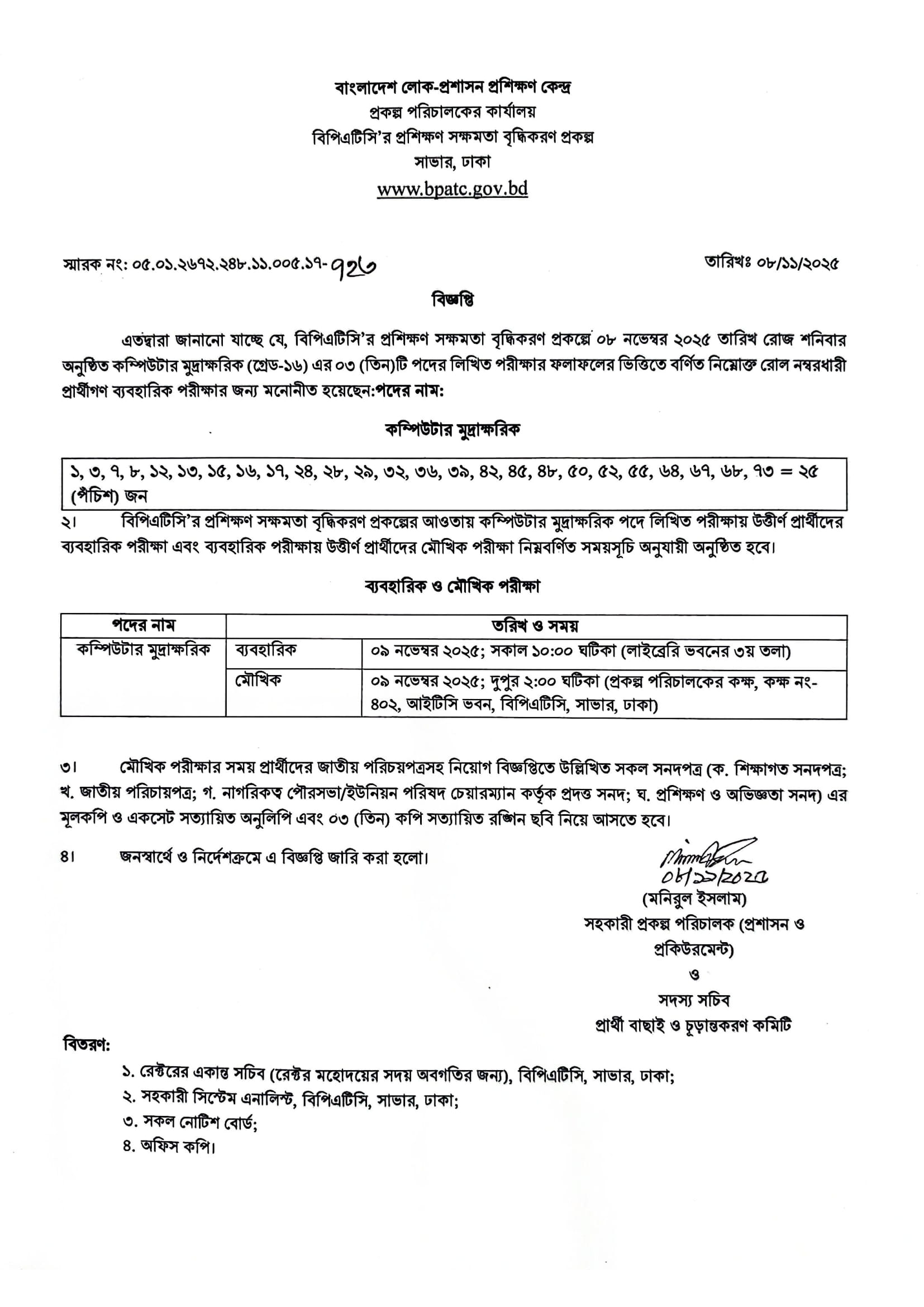 BPATC Computer Typist Exam Result 2025 PDF 1