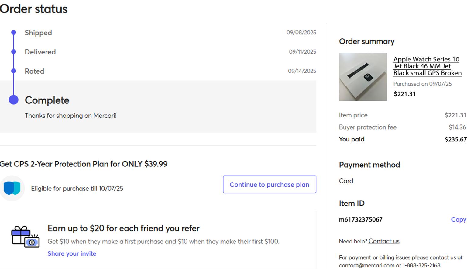 Apple Watch Series 10 46 MM Jet Black small GPS Broken