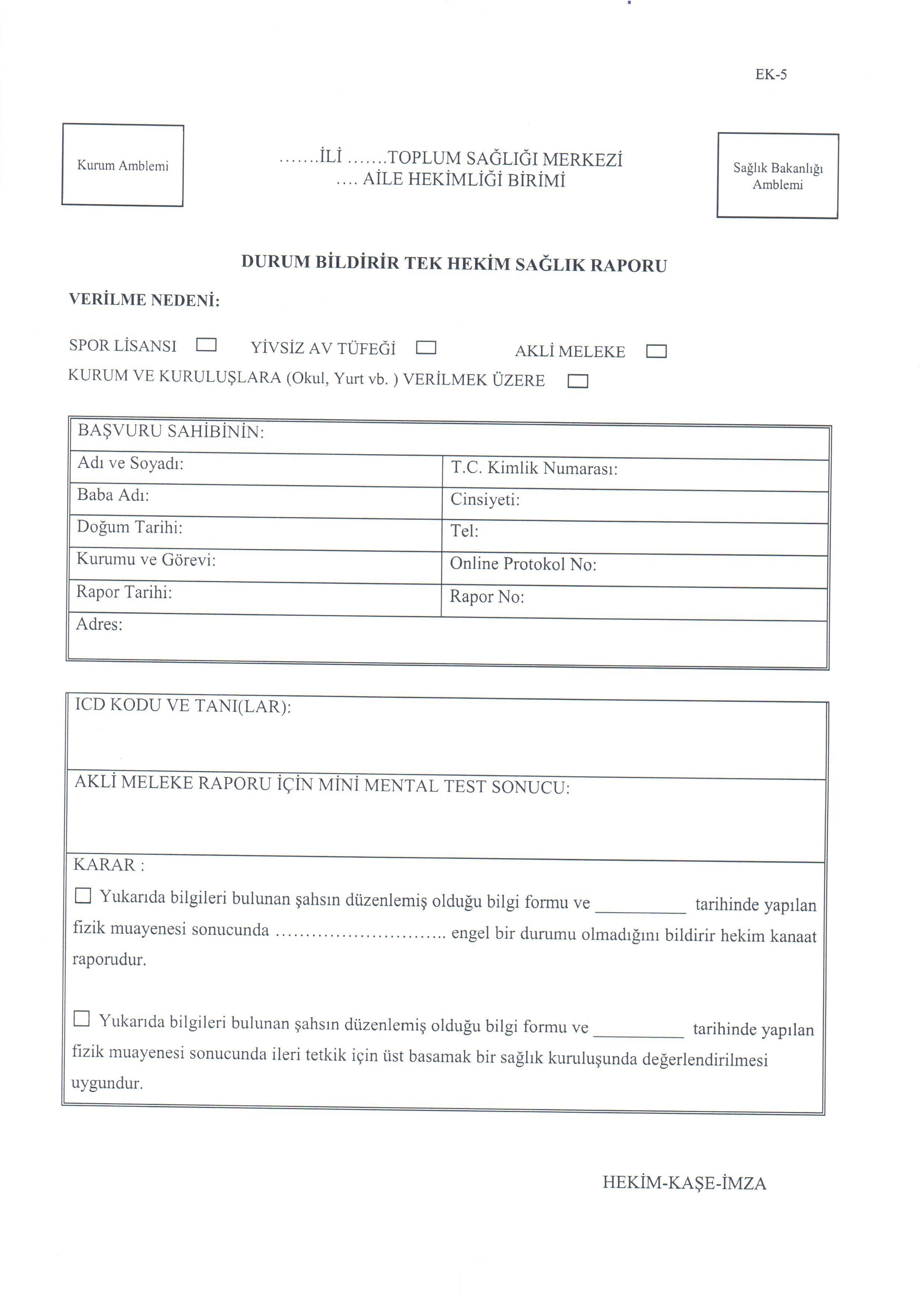 SAĞ LIK BELGESİ EK 5 - Page 1