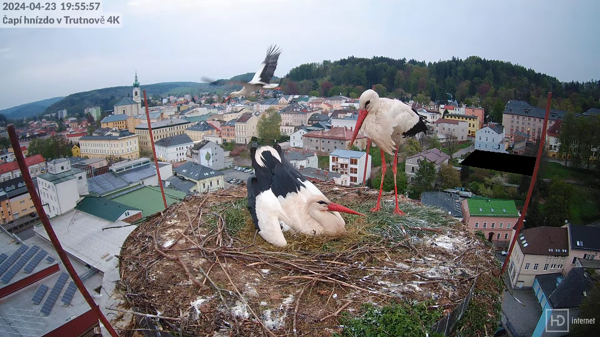 Tiešraidē no stārķa ligzdas uz alus darītavas skursteņa Trutnovā 17-0-23 screenshot