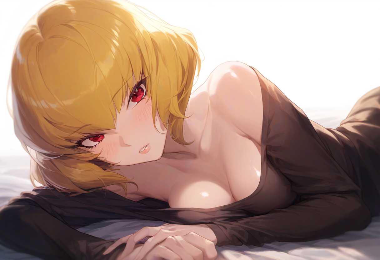 1girl, clementine, overlord, blonde hair, short hair, red eyes, small breasts, b s-1420571721