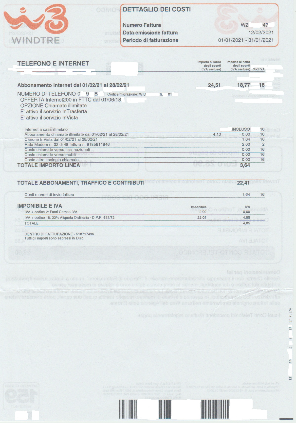 Conto Telefonico 2ª Pag (Dal 2021-01-01 al 2021-01-31)-(MOD Privacy)
