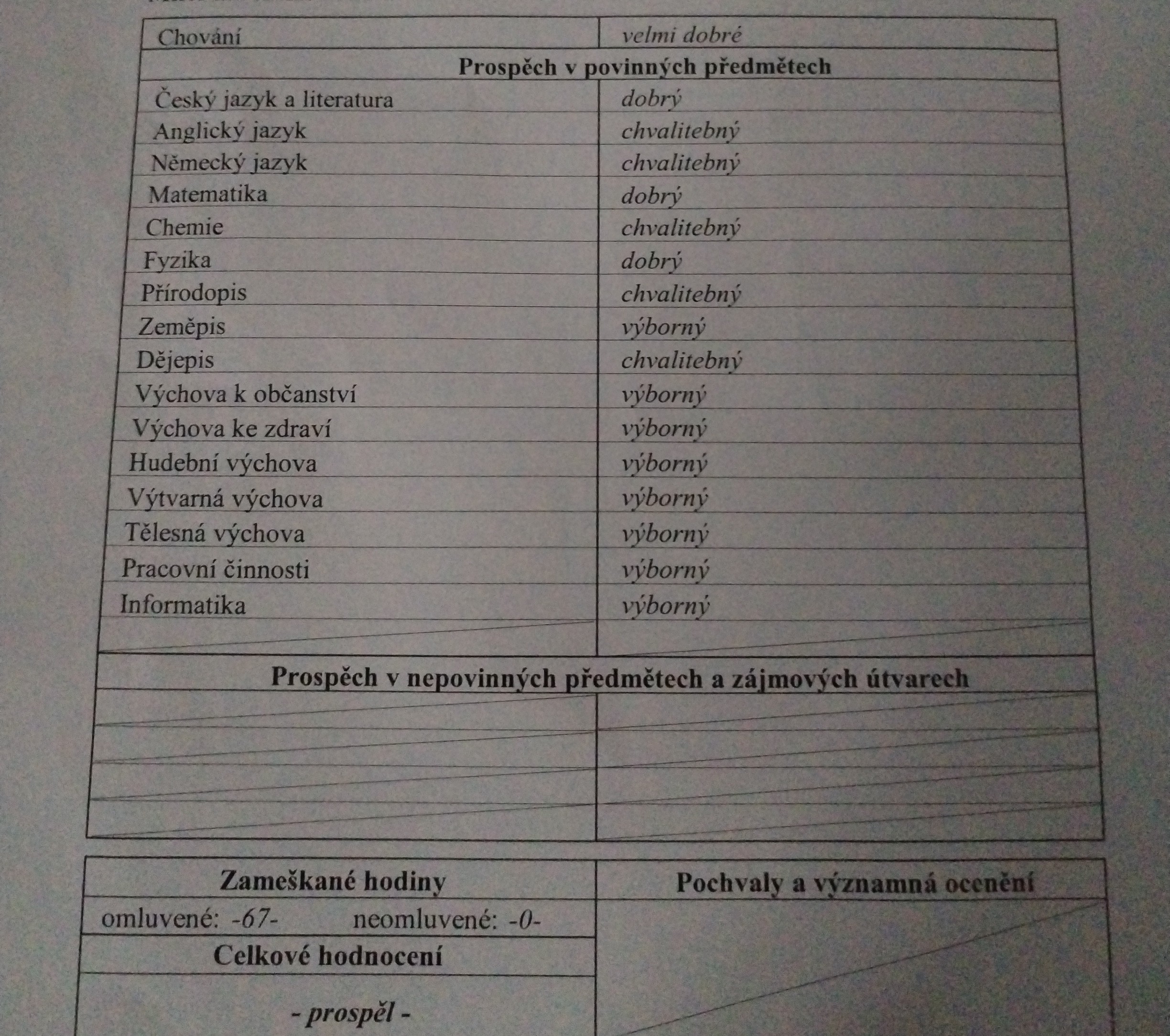 vysvědčení