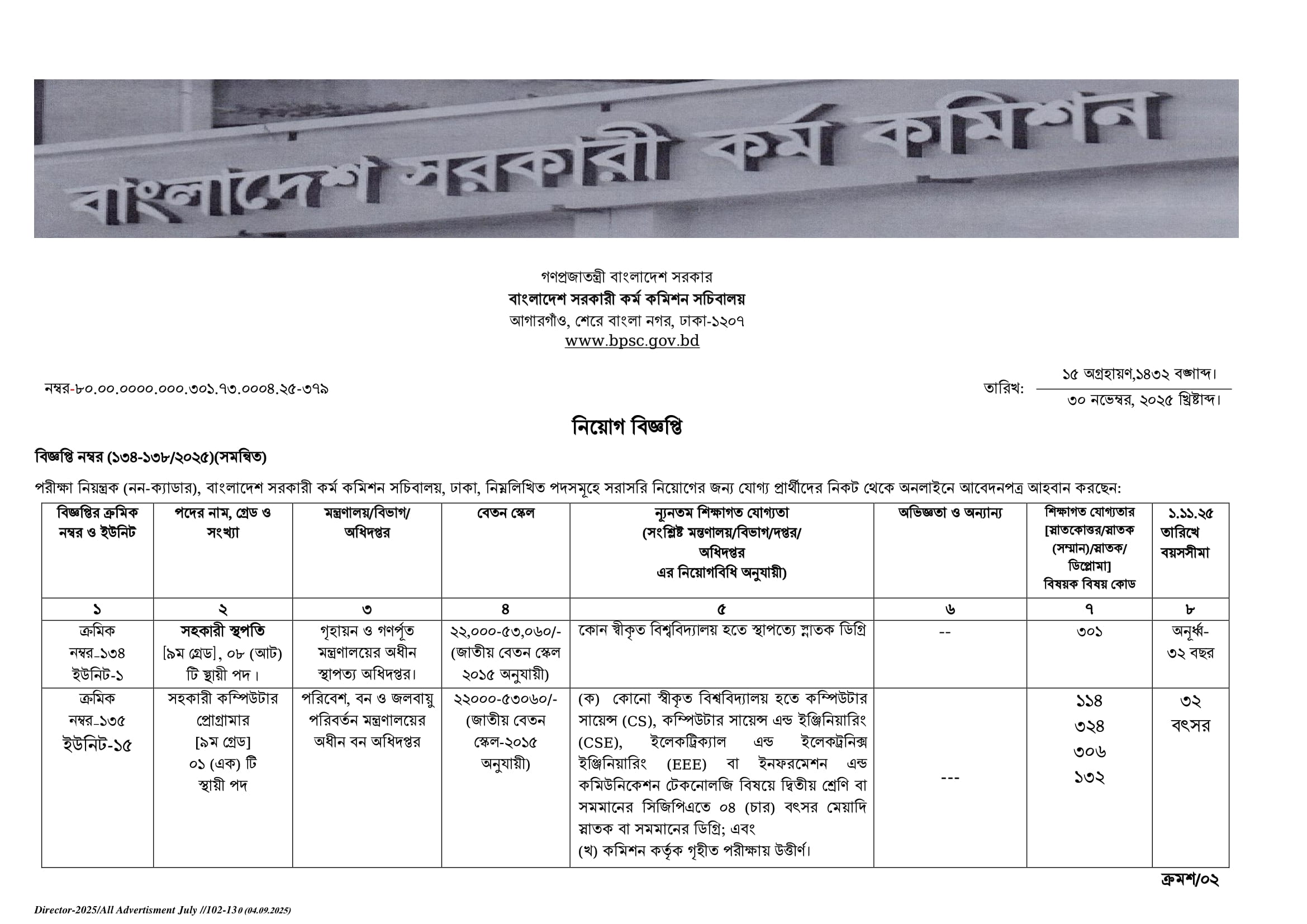 BPSC Non Cadre Job Circular PDF 1