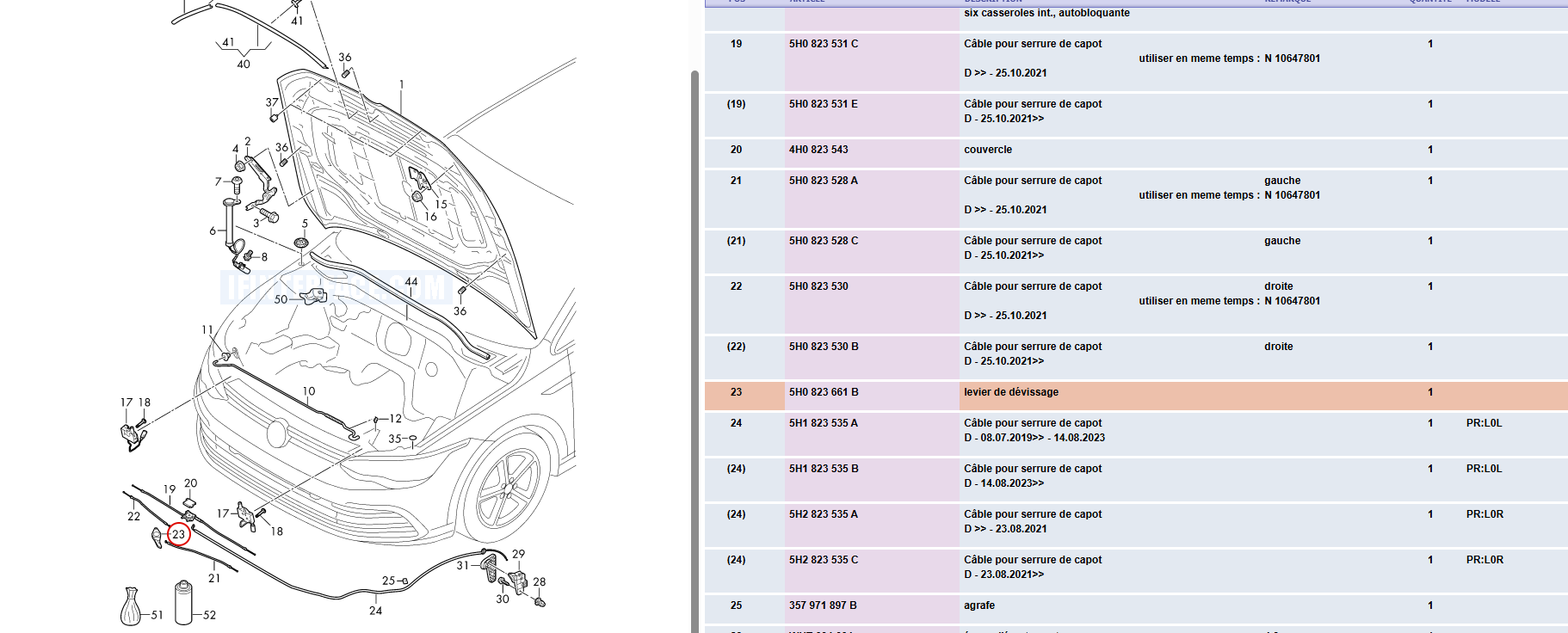 levier capot