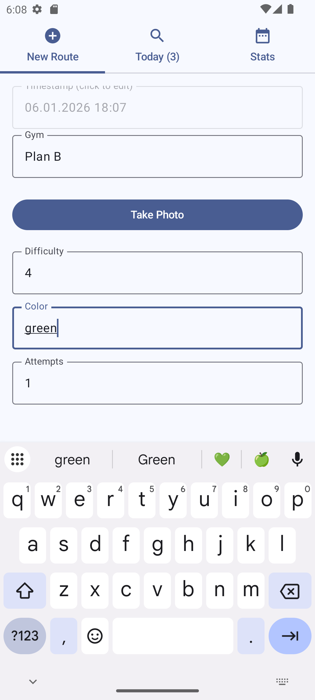 New Route Screen