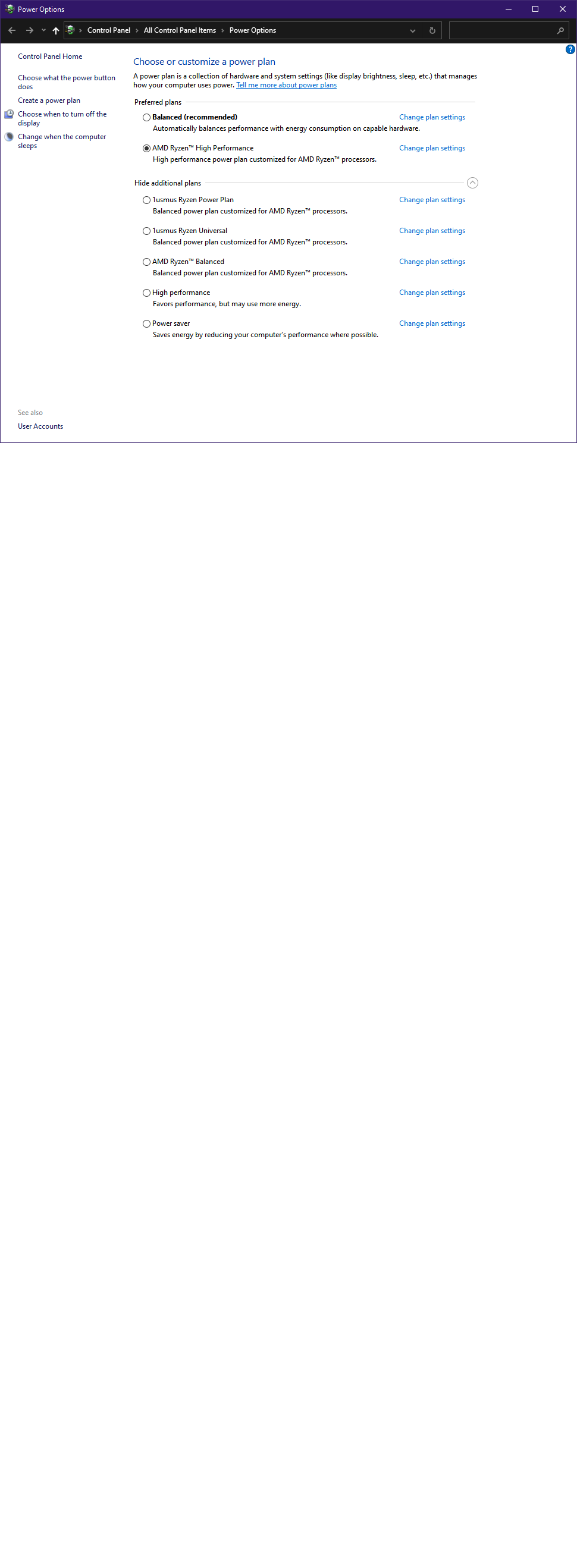 Windows 10 Power Plan