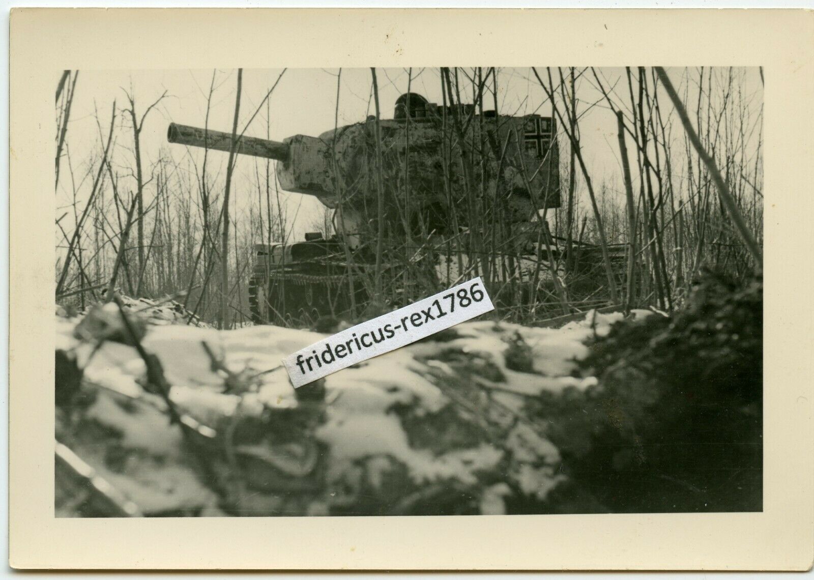 C21 Foto 12. Pz. Div Ostfront HKL russ. Beute Panzer KW-2 КВ-2 mit Balkenkreuz