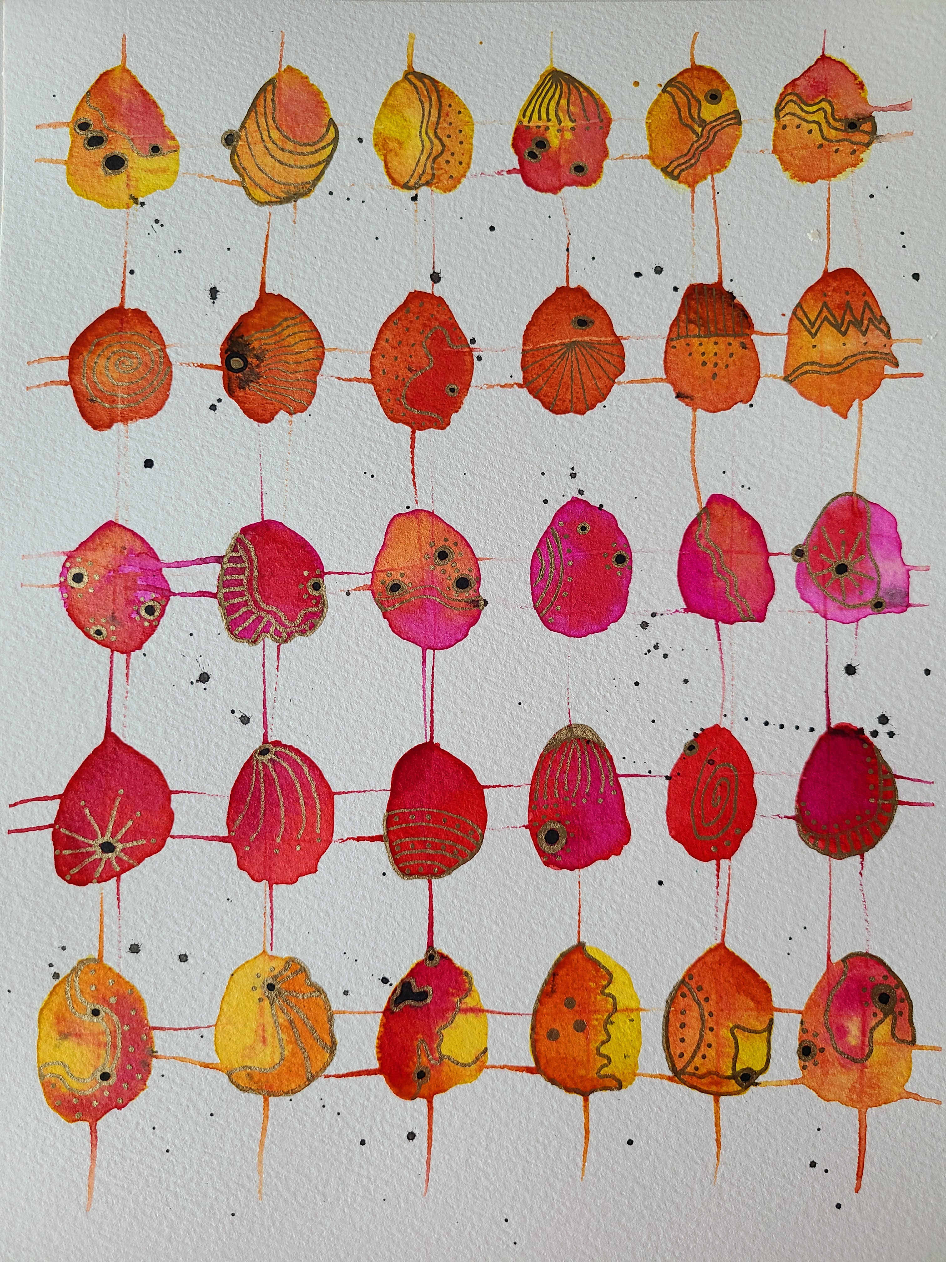 Warm Color Grid with Metallic Doodles