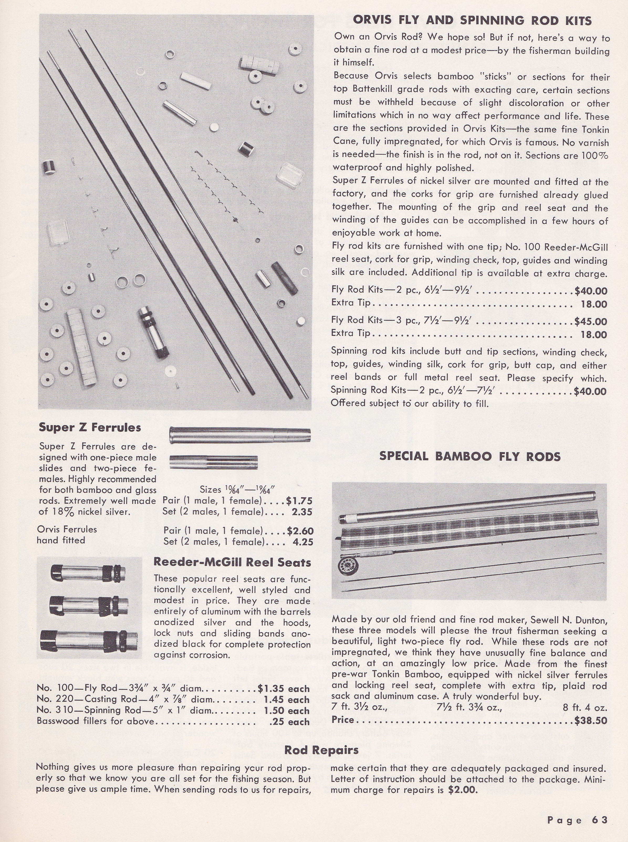 Catalog - 1960 page 63 (Rod Kits & Dunton Rods)