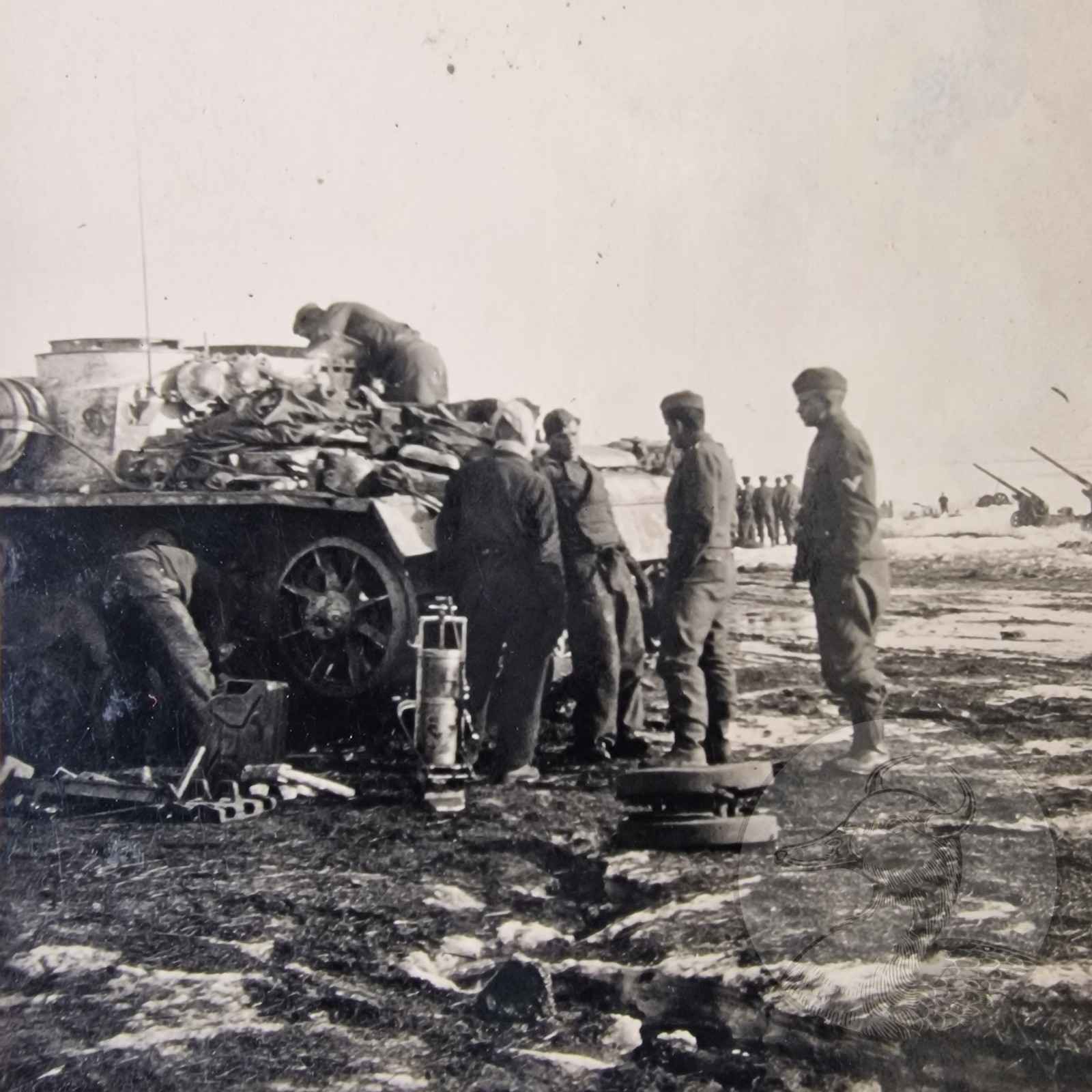 Foto 2WK Wehrmacht Sturmgeschütz StuG III Panzer Soldaten Reparatur (3)