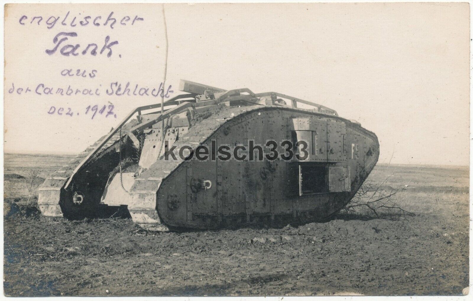 Foto englischer Tank aus der Cambrai Schlacht ! Panzer auf dem Schlachtfeld 1917(2)