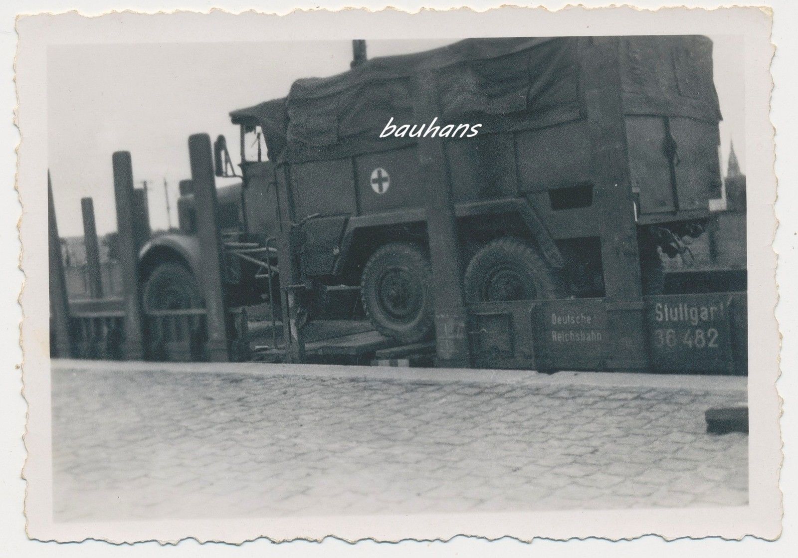Sieg. Bahnhof Verladung Kriegsgerät LKW 2.WK