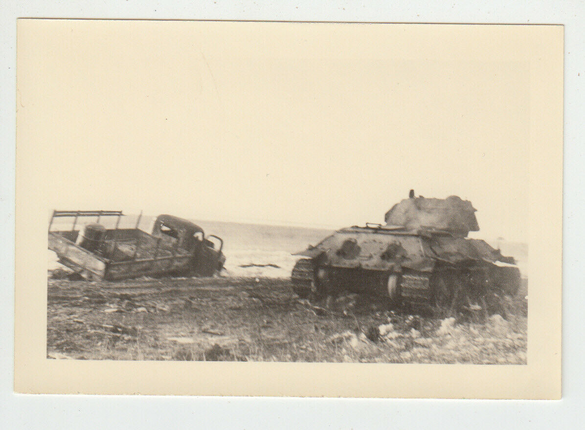 Zerstörter russischer Kampfpanzer T 34 & LKW