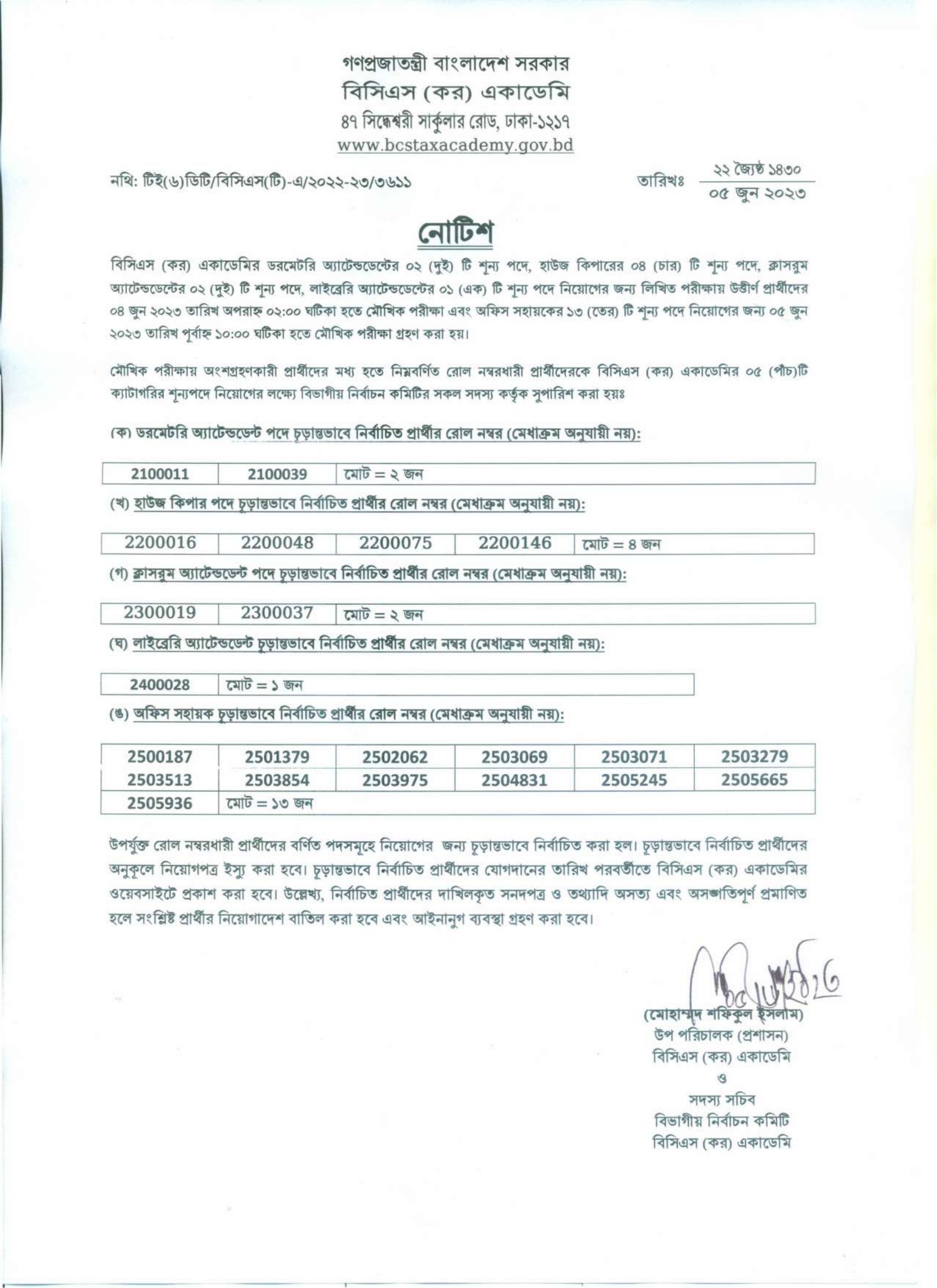 BCS (Tax) Academy Final Result 2023