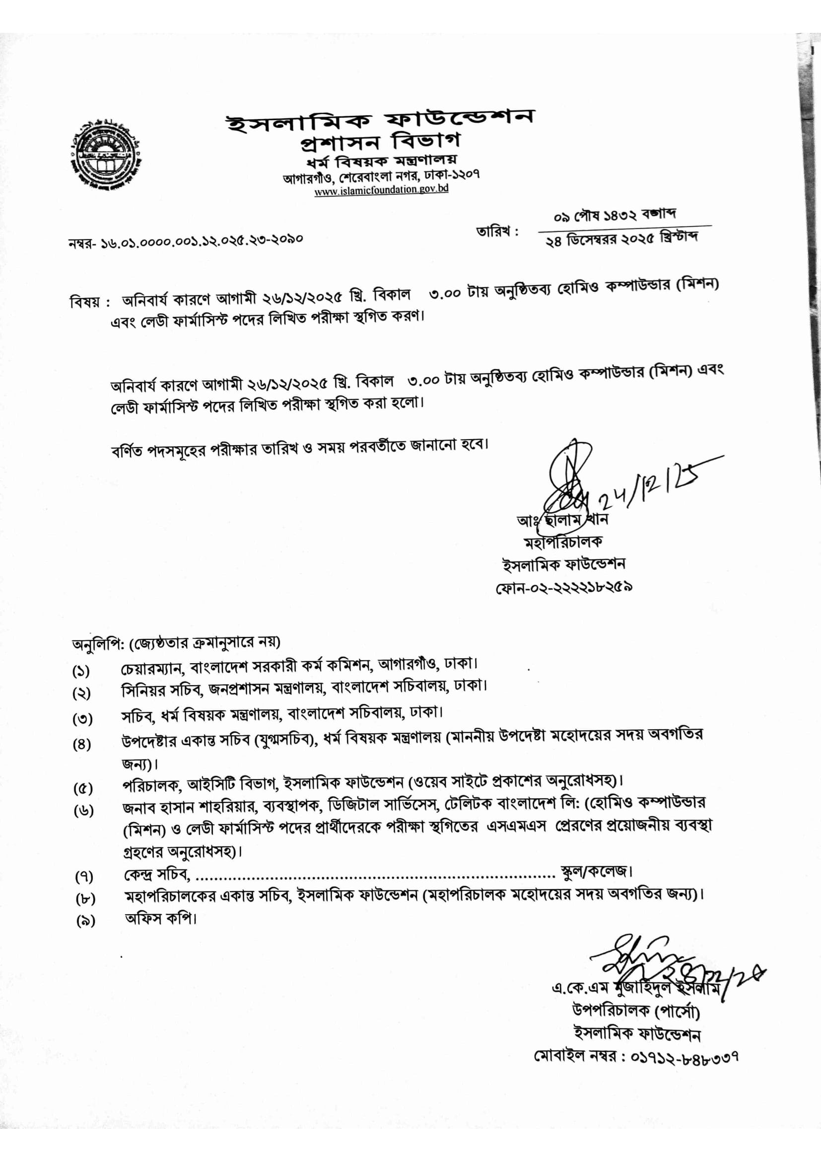 Islamic Foundation Exam Postponed Notice 2025 PDF 1