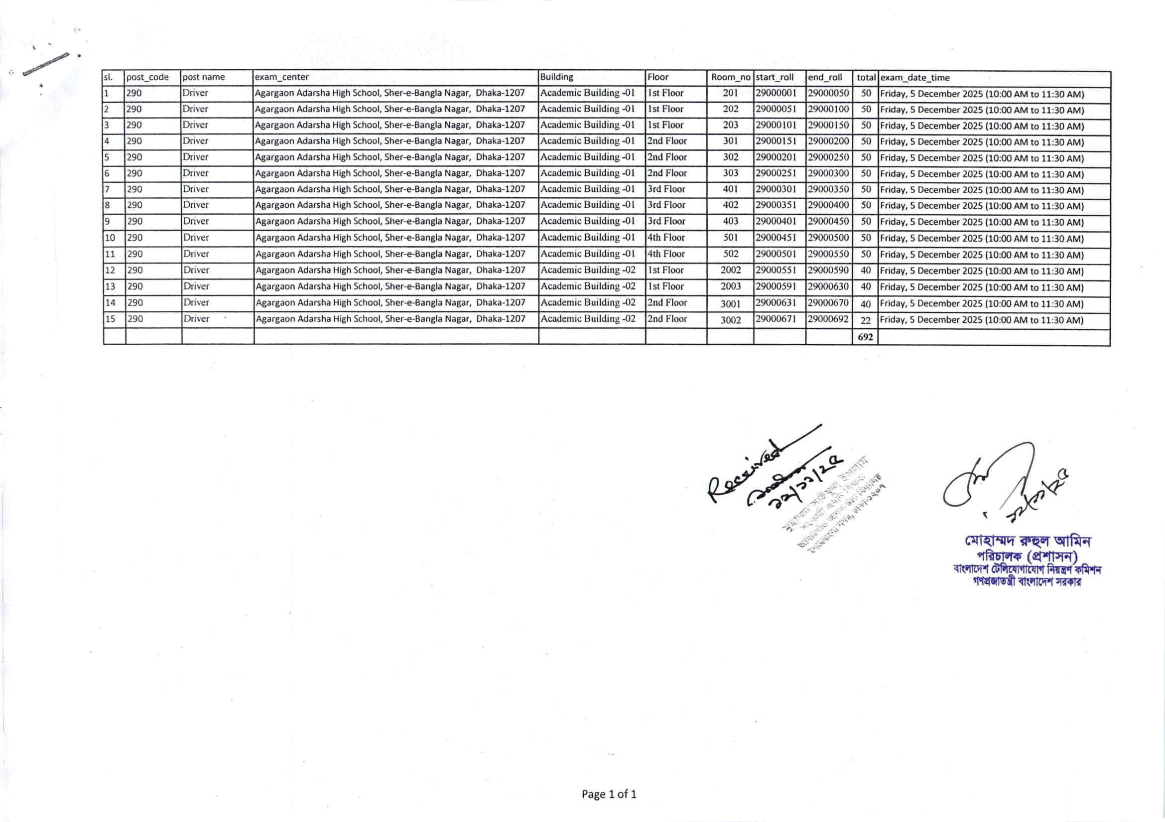 BTRC Exam Seat Plan 2025 PDF 09