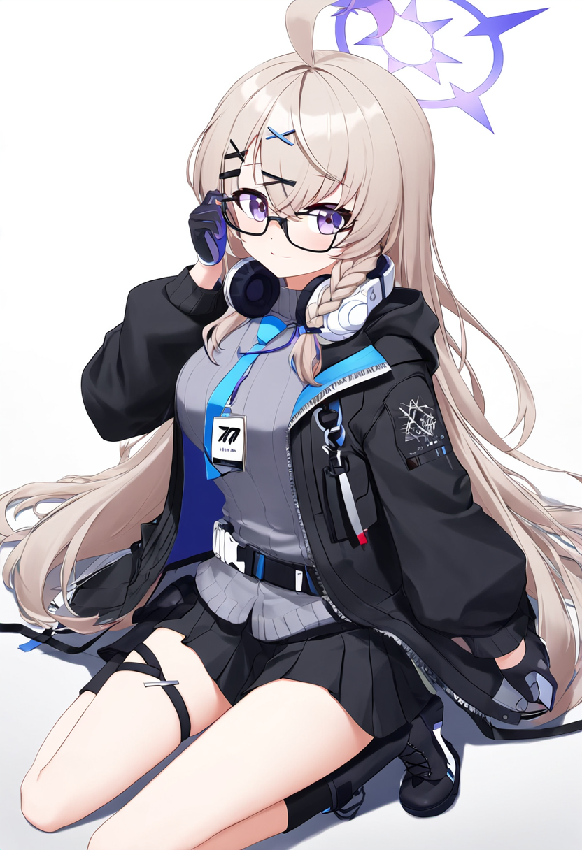 1 girl, kotama (blue archive), light brown hair, purple eyes, single braid, ahog s-2936074372