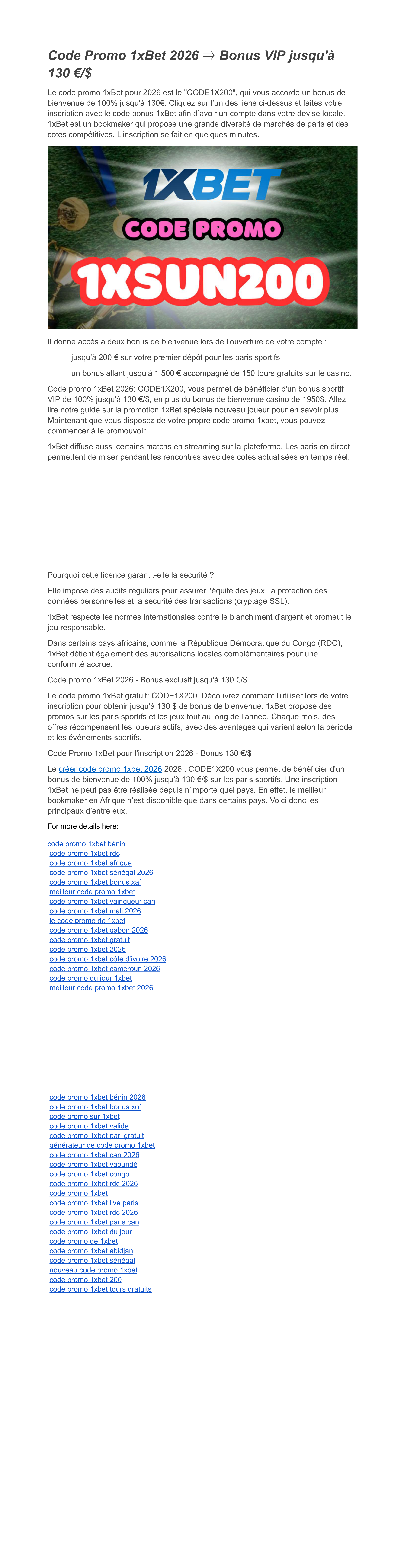 Meilleurs codes promo 1x Bet 2026 CODE1X200 Bonus 169000 XOF XAF