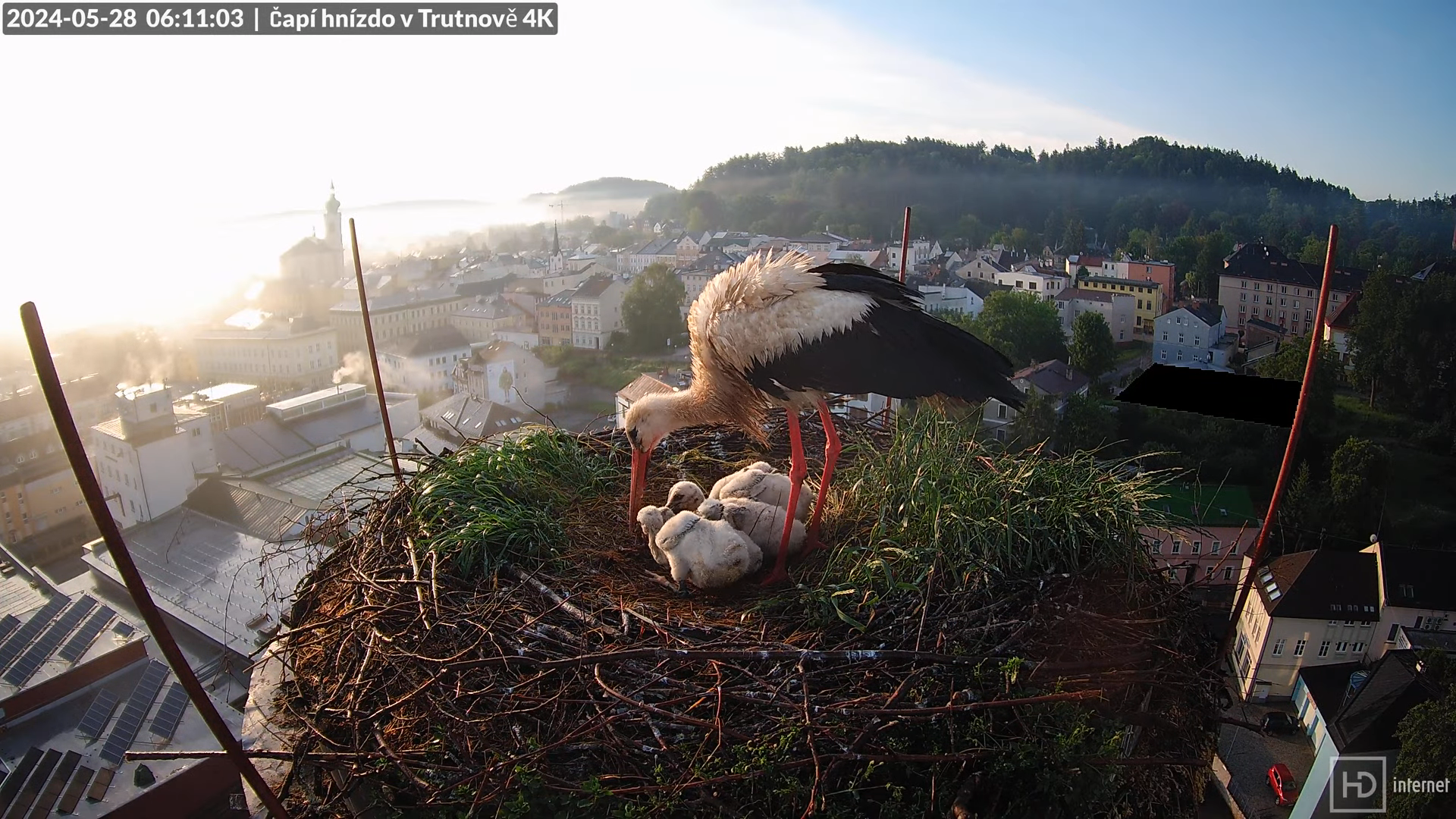Tiešraidē no stārķa ligzdas uz alus darītavas skursteņa Trutnovā 10-14-48 screenshot