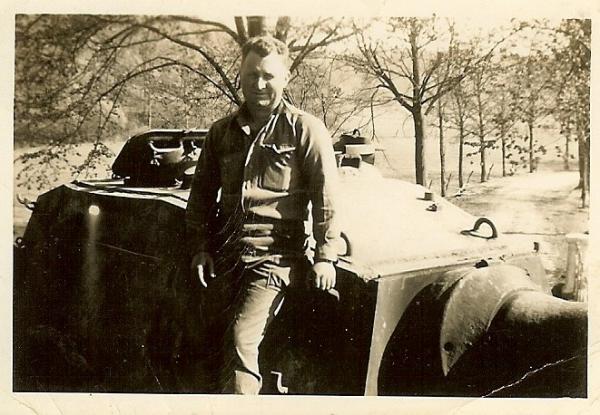 US Soldier Posed on KO'd German Königstiger Heavy Panzer Tank Turret