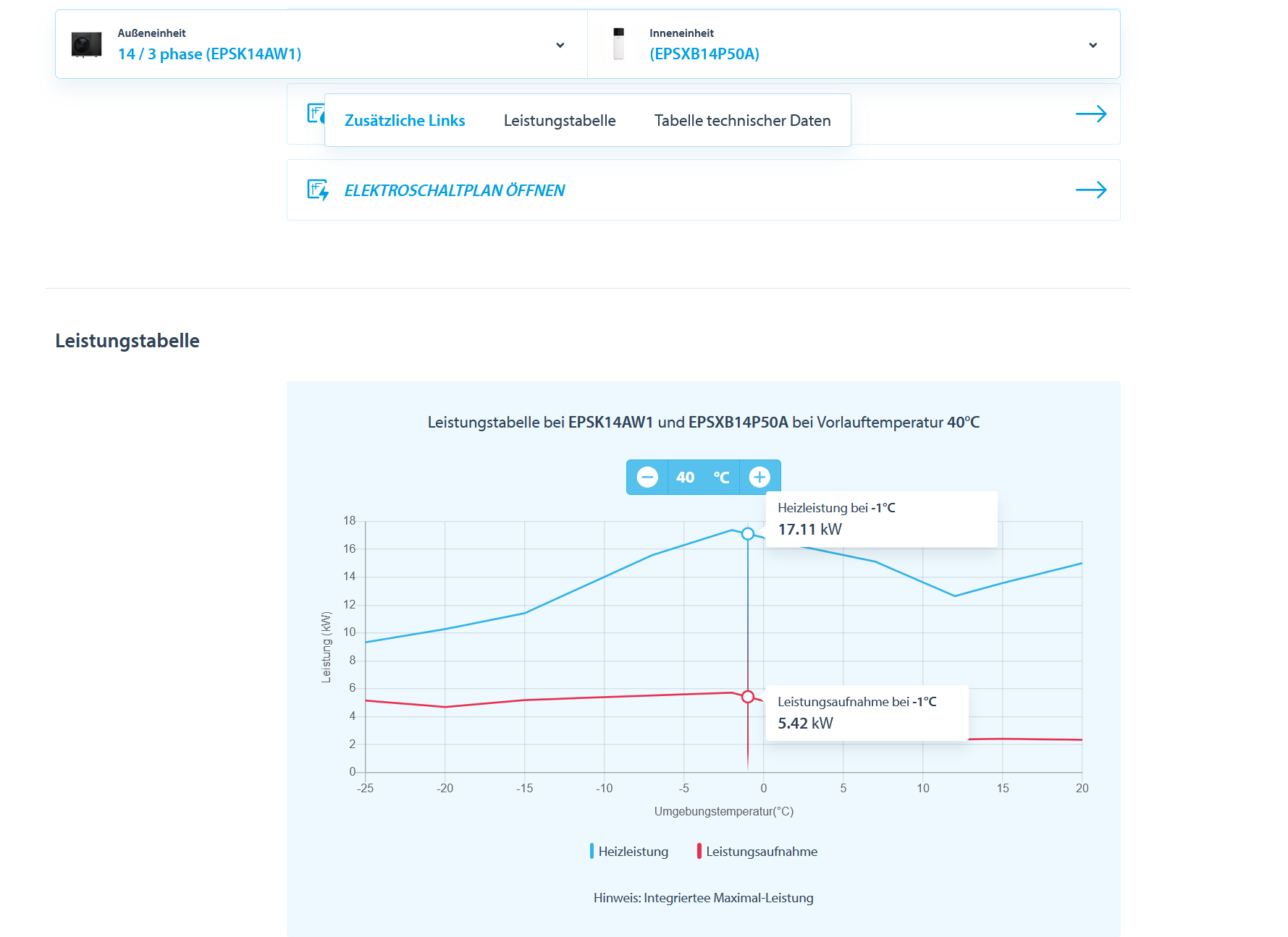 Leistung 14er 4H bei 1Grad u 40Grad
