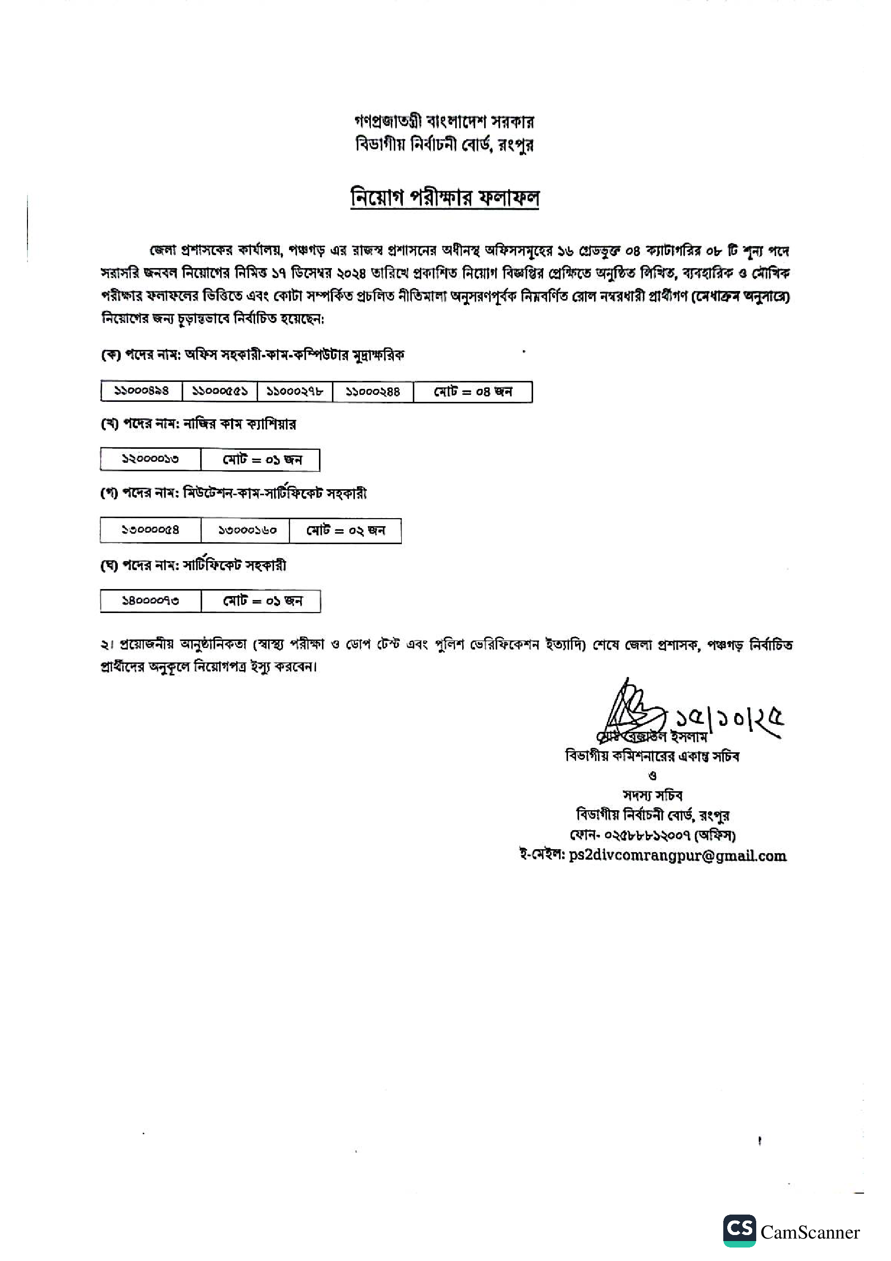 DC Office Panchagarh Final Result 2025 PDF