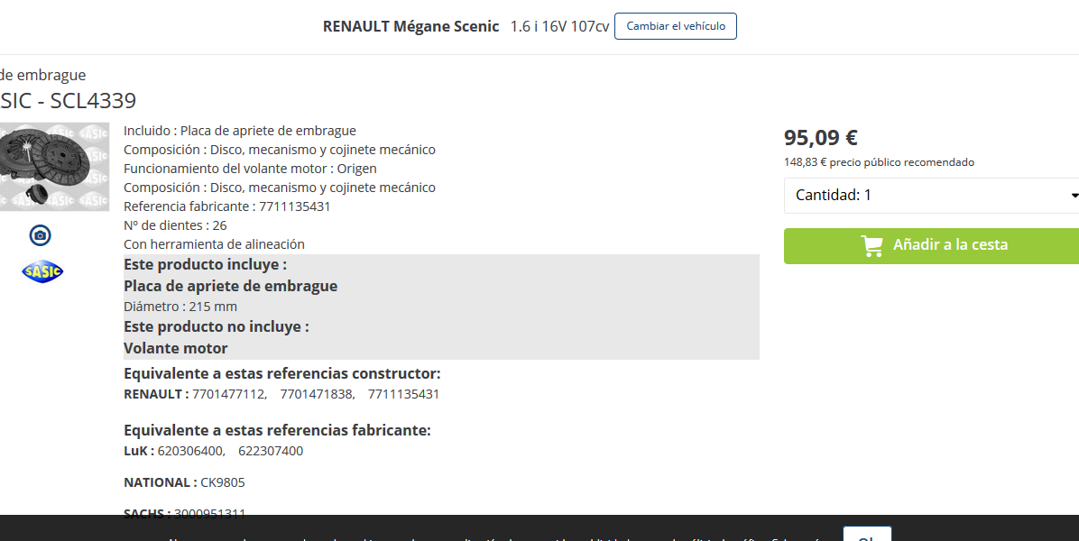 EMBRAGUE SCENIC 1600