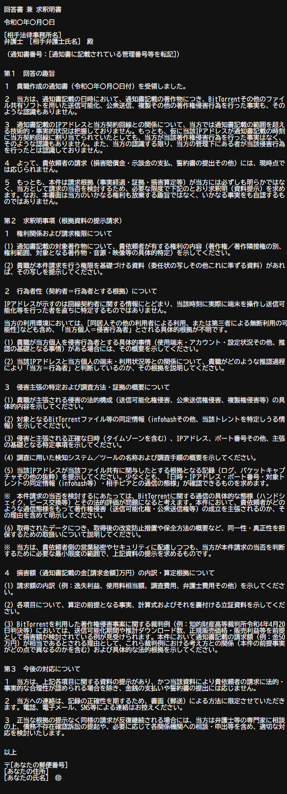 回答書例2
