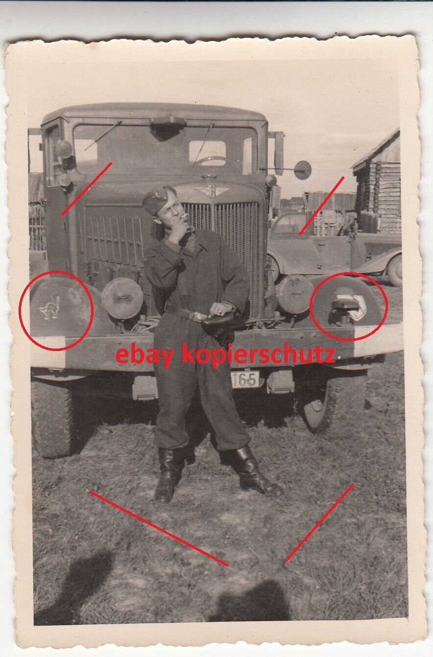 Orig.Foto Luftwaffe LKW (Büssing) PKW Truppenkennzeichen 10J.G.26 Geschwader