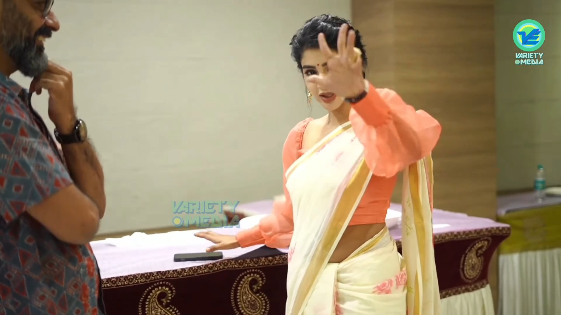 Pavithra Lakshmi Sexy Big Wide Navel in Saree from an event.mkv_snapshot_00.46.710