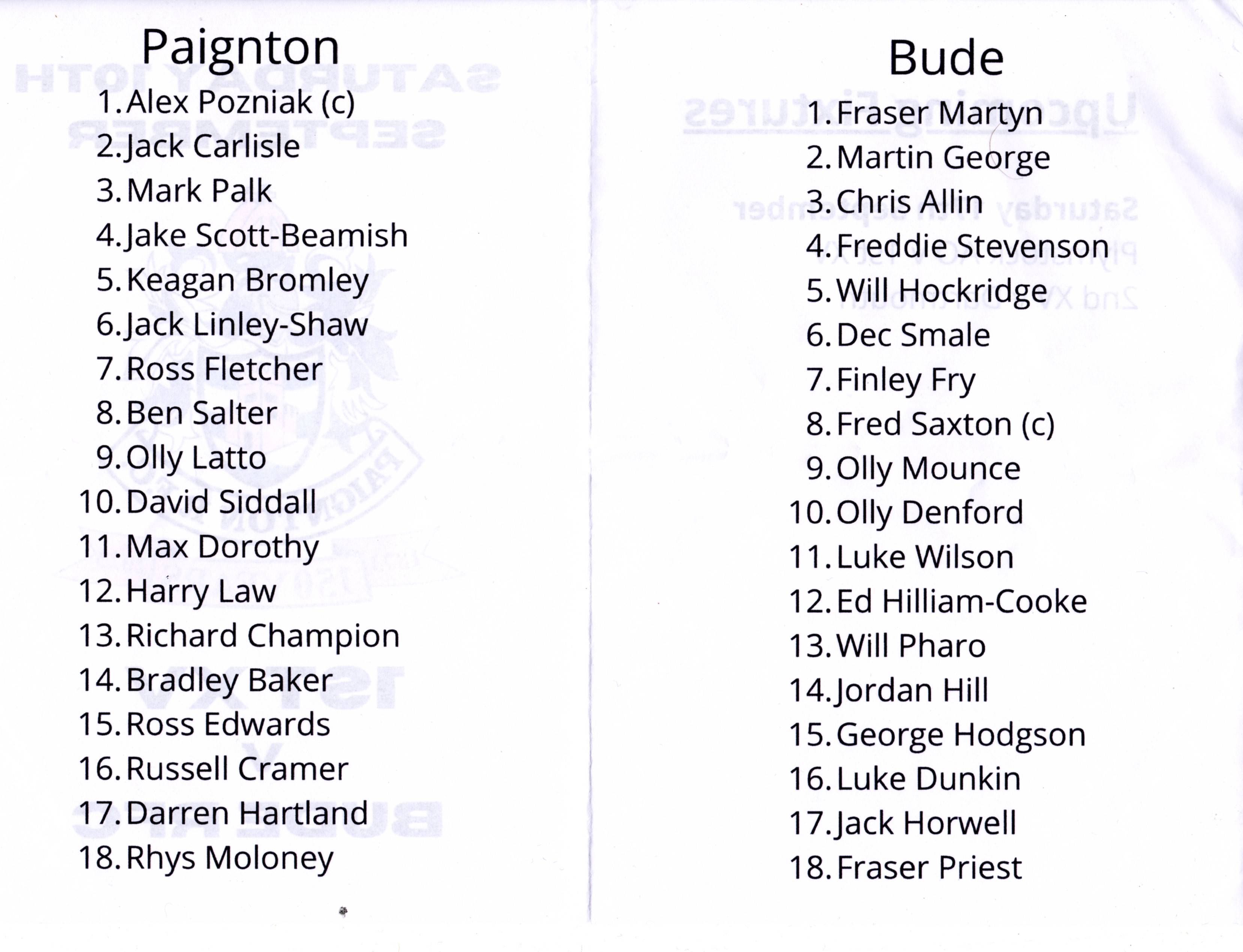 team sheet