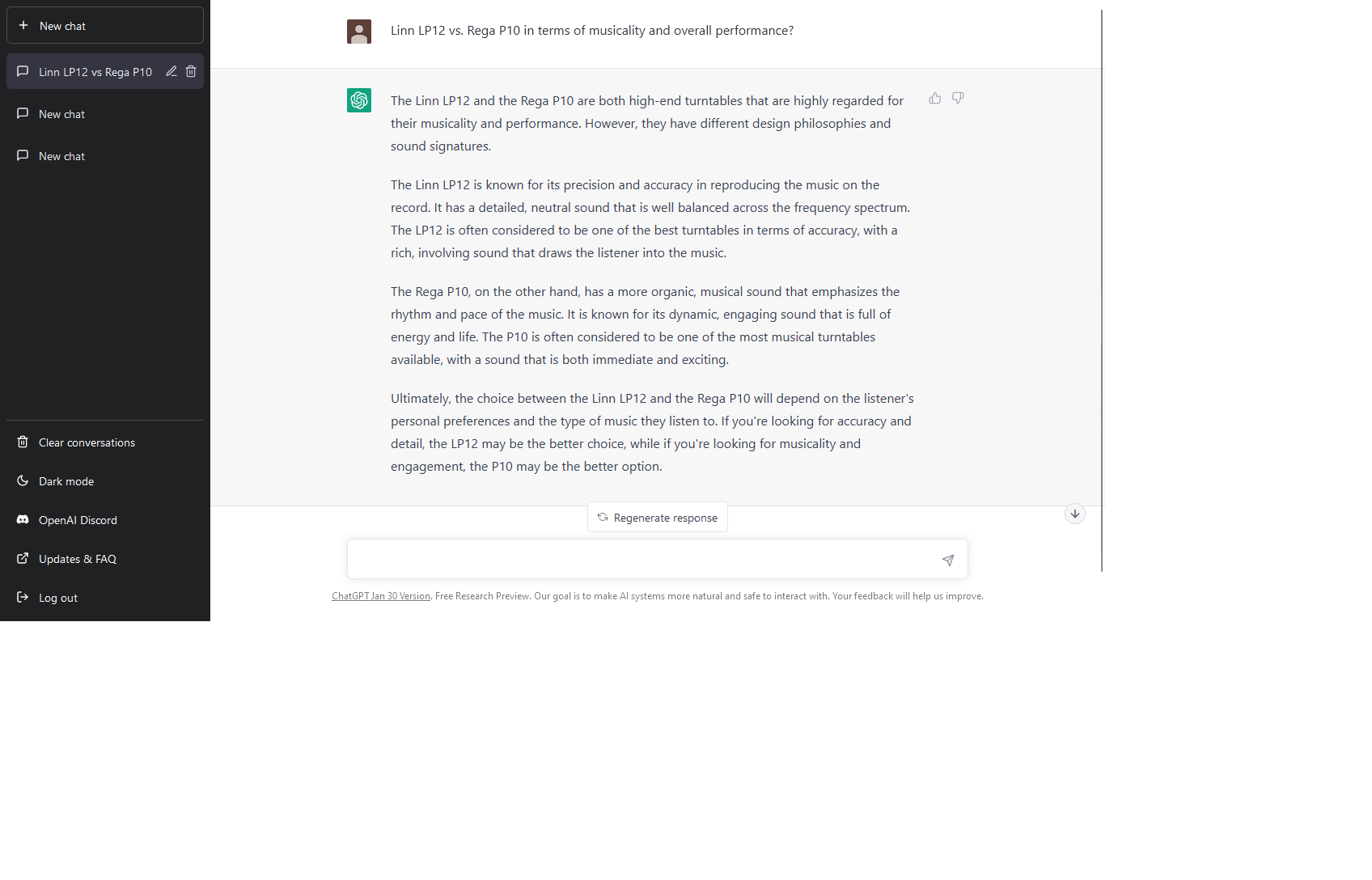 Linn Vs Rega as per openai