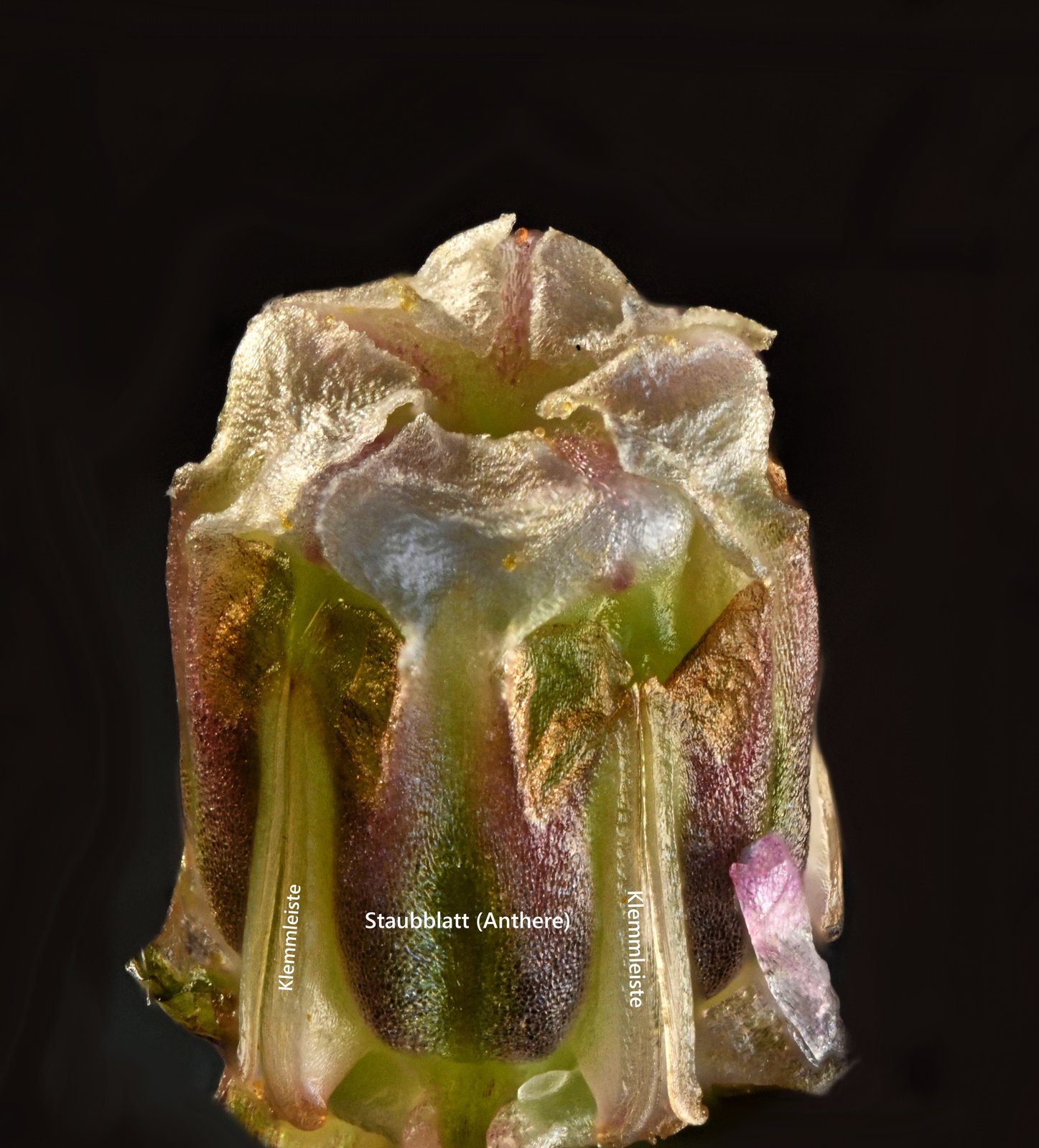 Blüte 10 Klemmfalle Gynostegium Seidenpflanze Sumpf Asclepias incarnata Laowa 4x Stack 42