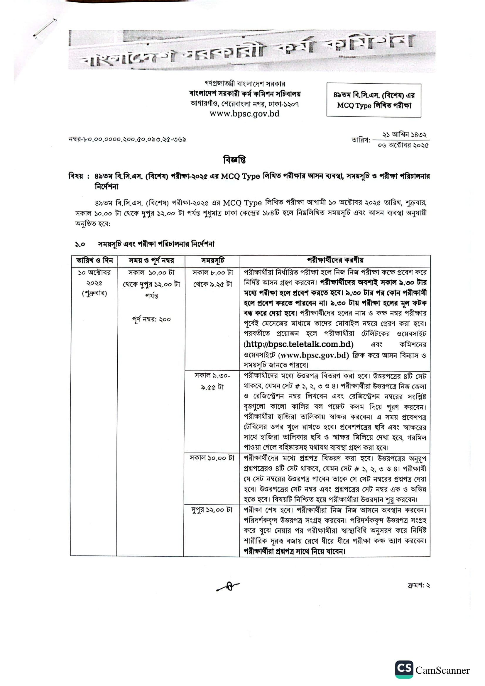 49th BCS Exam Seat Plan 2025 PDF-01