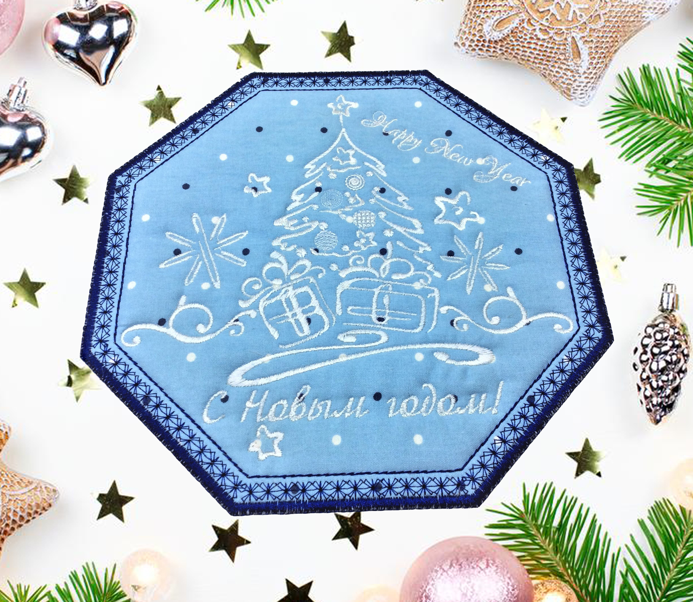 предпосылка-рождества-с-украшениями-ветвей-ели-светов-розовых-и-130972467
