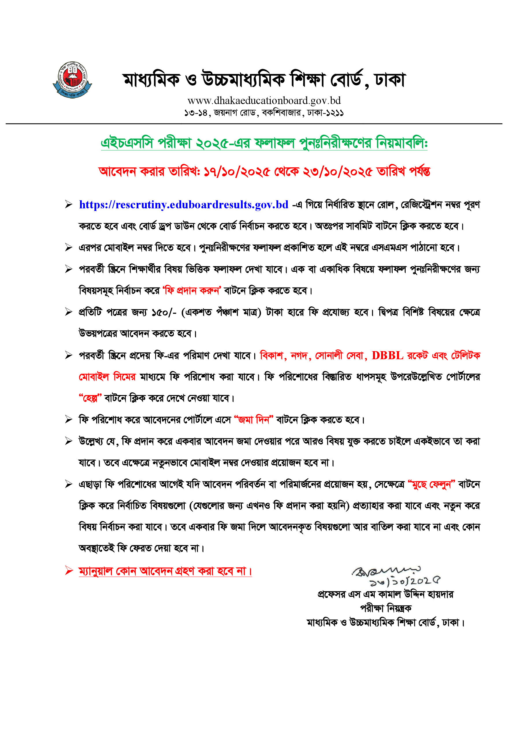 HSC Exam Result Rescutiny Notice 2025 PDF