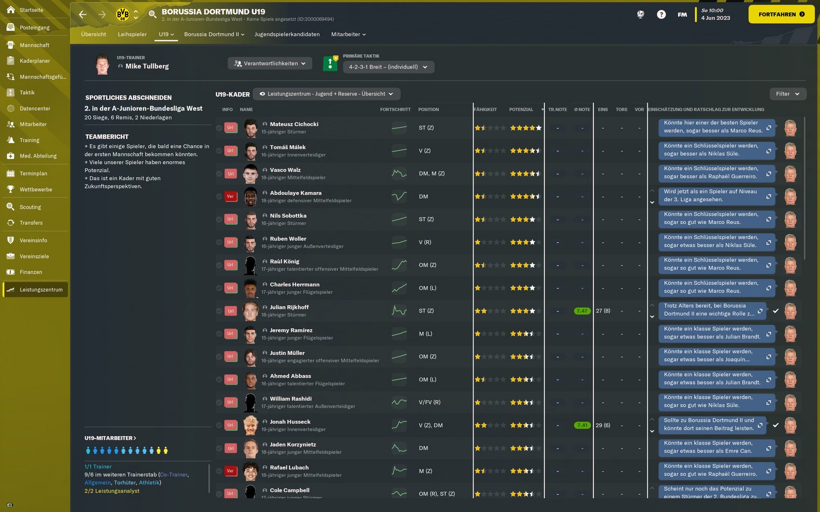 Leistungszentrum - Jugend Reserve - Übersicht