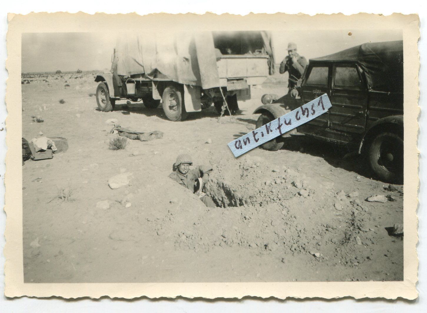 Beute-Jeep-LKW u.VW-Kübelwagen des Afrikakorps beim Rückzug in A