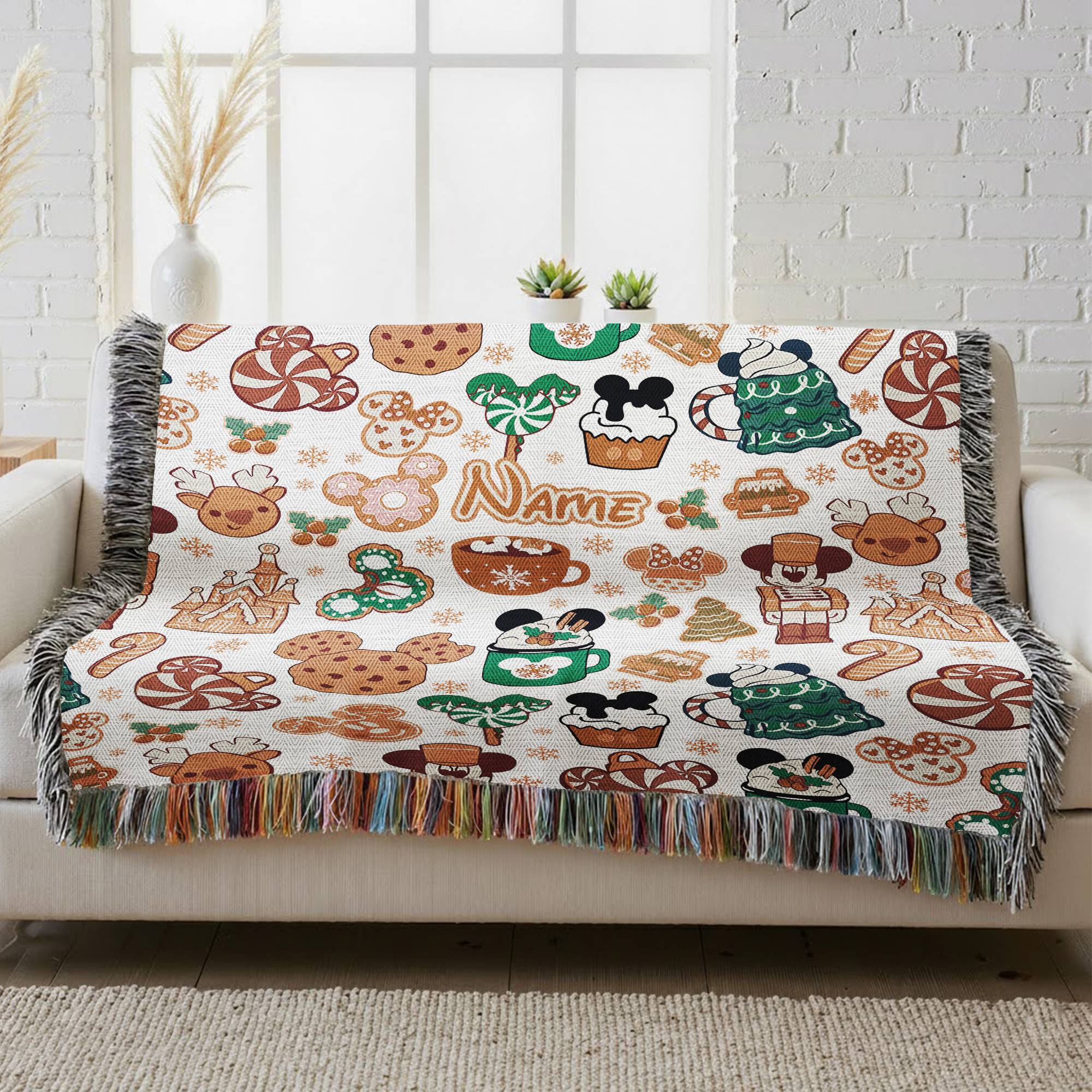 251110320 Printify Woven Blanket 52x37 Disney Christmas Food Mickey Minnie MK4
