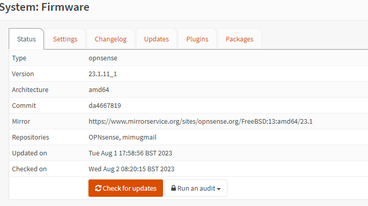 OpnSense - Firmware Status