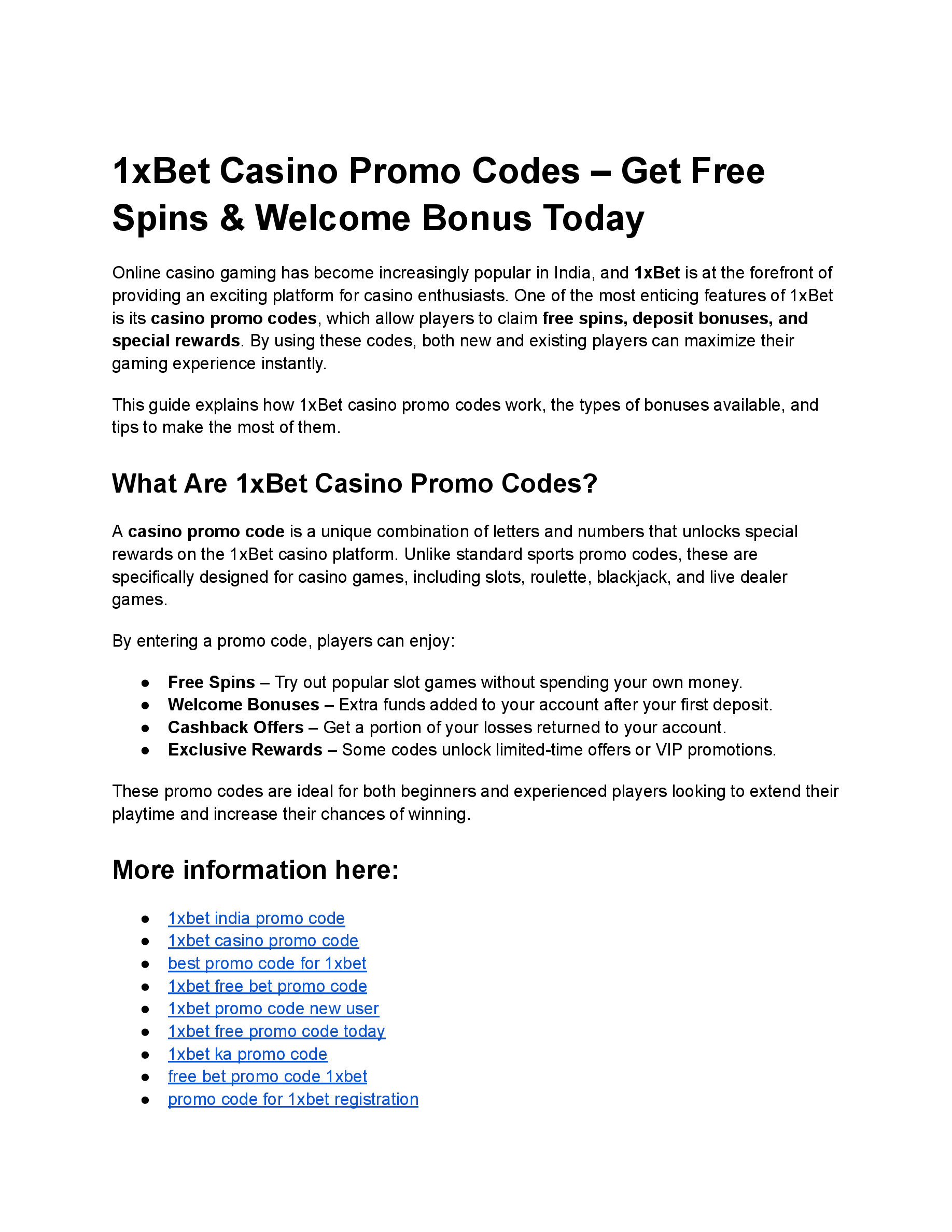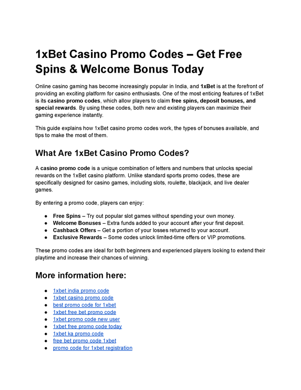 1xBet Casino Promo Codes – Get Free Spins & Welcome Bonus Today